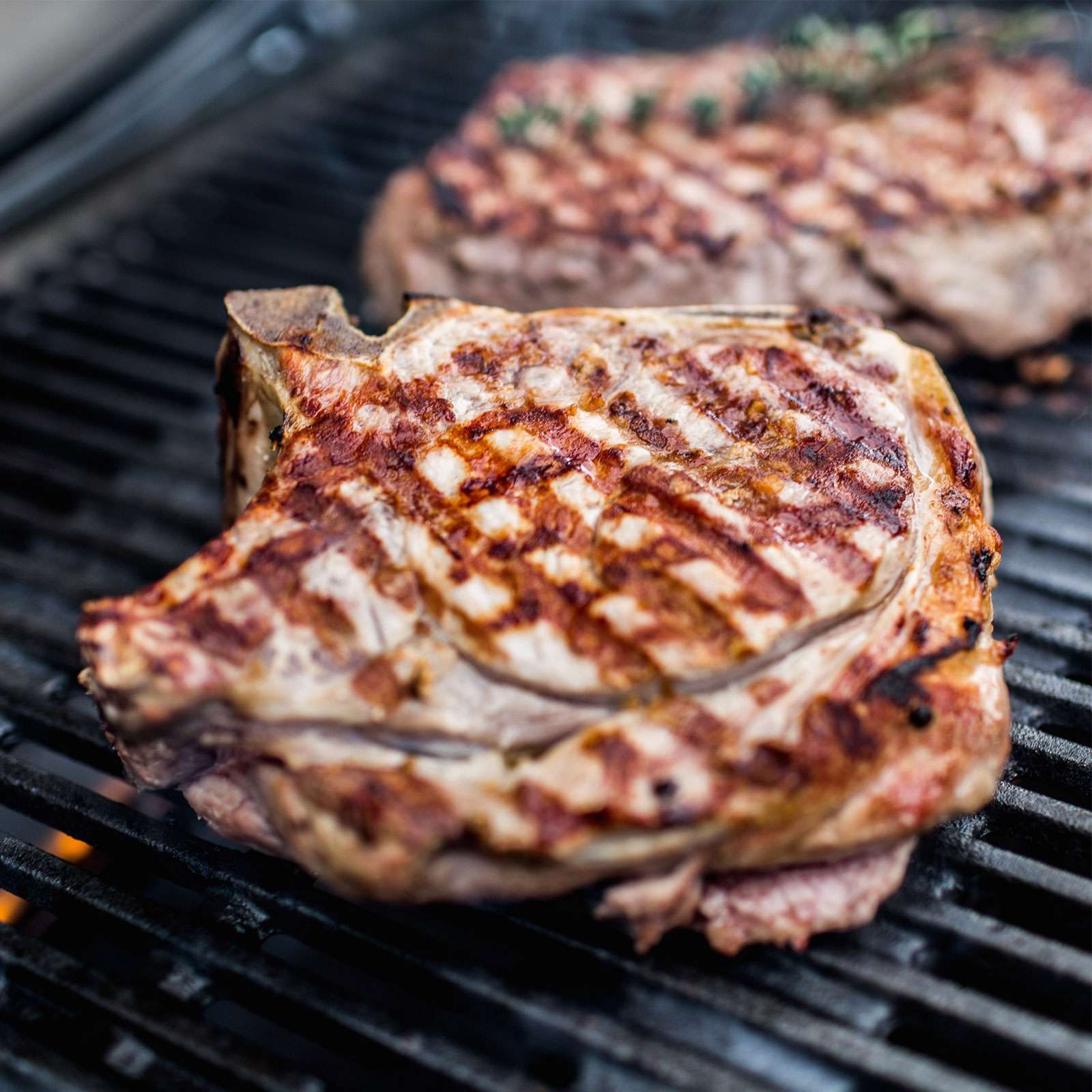 - Iberico French Rack grillen von der Sizzle Zone mit Kümmel-Sesam-Kartoffeln