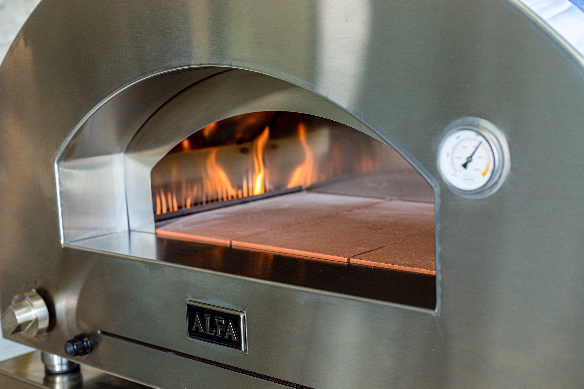 Mit diesem Pizzaofen können nicht nur duftende Pizzen, sondern auch zahlreiche andere Dinge wie Brot, Braten, Lasagne, Gemüse und Desserts zubereitet werden. Der Backofen 4 Pizze wird mit Gas befeuert, wobei die kulinarischen Möglichkeiten auch verdoppelt werden können, indem er mit dem Hybrid-Kit von Alfa (Separat erhältlich) in einen Hybrid-Ofen verwandelt wird. Mit dem Hybrid-Kit für den Gasbackofen kann von Mal zu Mal entschieden werden, ob mit Holz oder Gas gebacken werden soll, so dass immer die größtmögliche Gestaltungsfreiheit besteht.