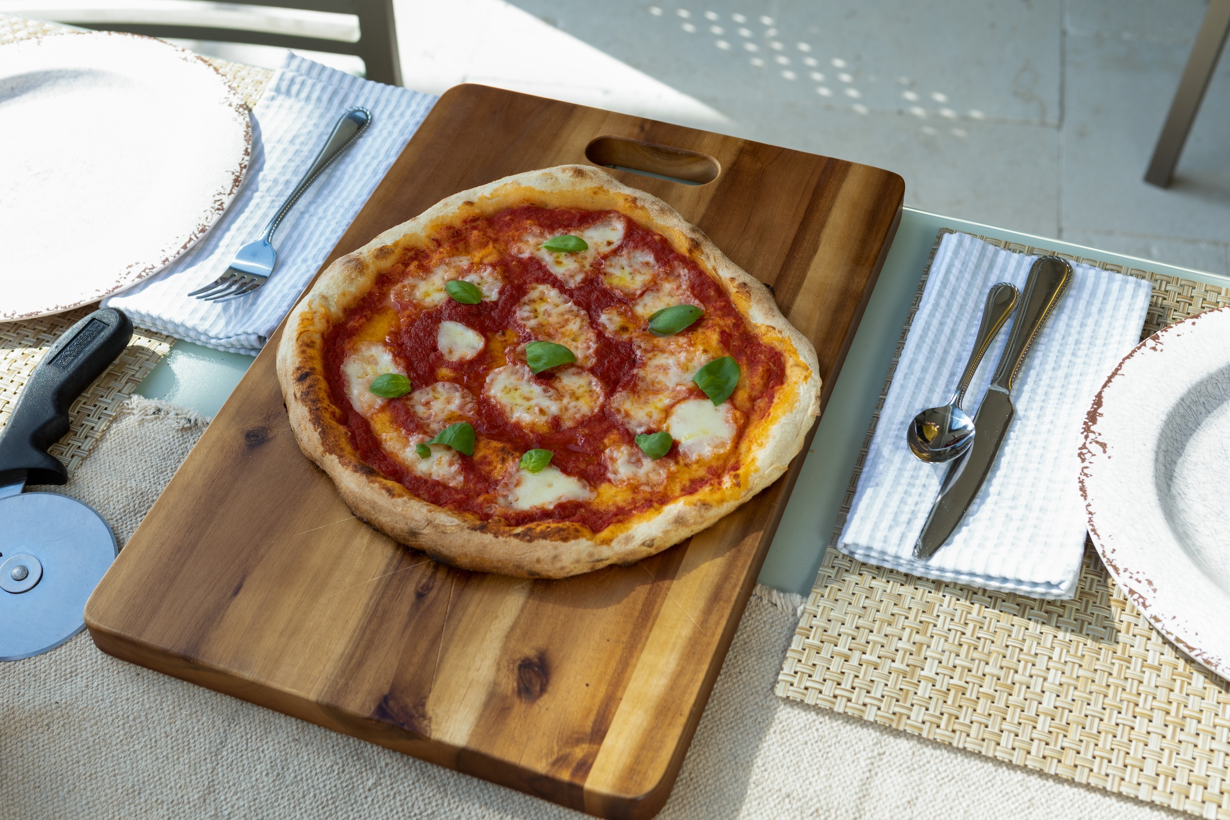 Der Ofen heizt schnell auf und ist sofort einsatzbereit. Das Gehäuse aus Edelstahl und die Isolierung aus Keramikfasern kombiniert mit der feuerfesten Tischplatte gewährleisten stets perfekte Ergebnisse. Die innovative Heat Genius-Technologie ermöglicht es, den Belag bei einer bestimmten Temperatur und den Teig bei einer anderen Temperatur zu garen, so dass jede Pizza immer duftend und gut gebacken ist. Die Wärme wird langsam vom feuerfesten Stein abgegeben und gleichmäßig über die gewölbten Ofenwände abgestrahlt. Dadurch werden die Beläge schneller gar und geben einen Teil ihrer Feuchtigkeit ab. Der Teig wird knusprig, ohne zu verbrennen.