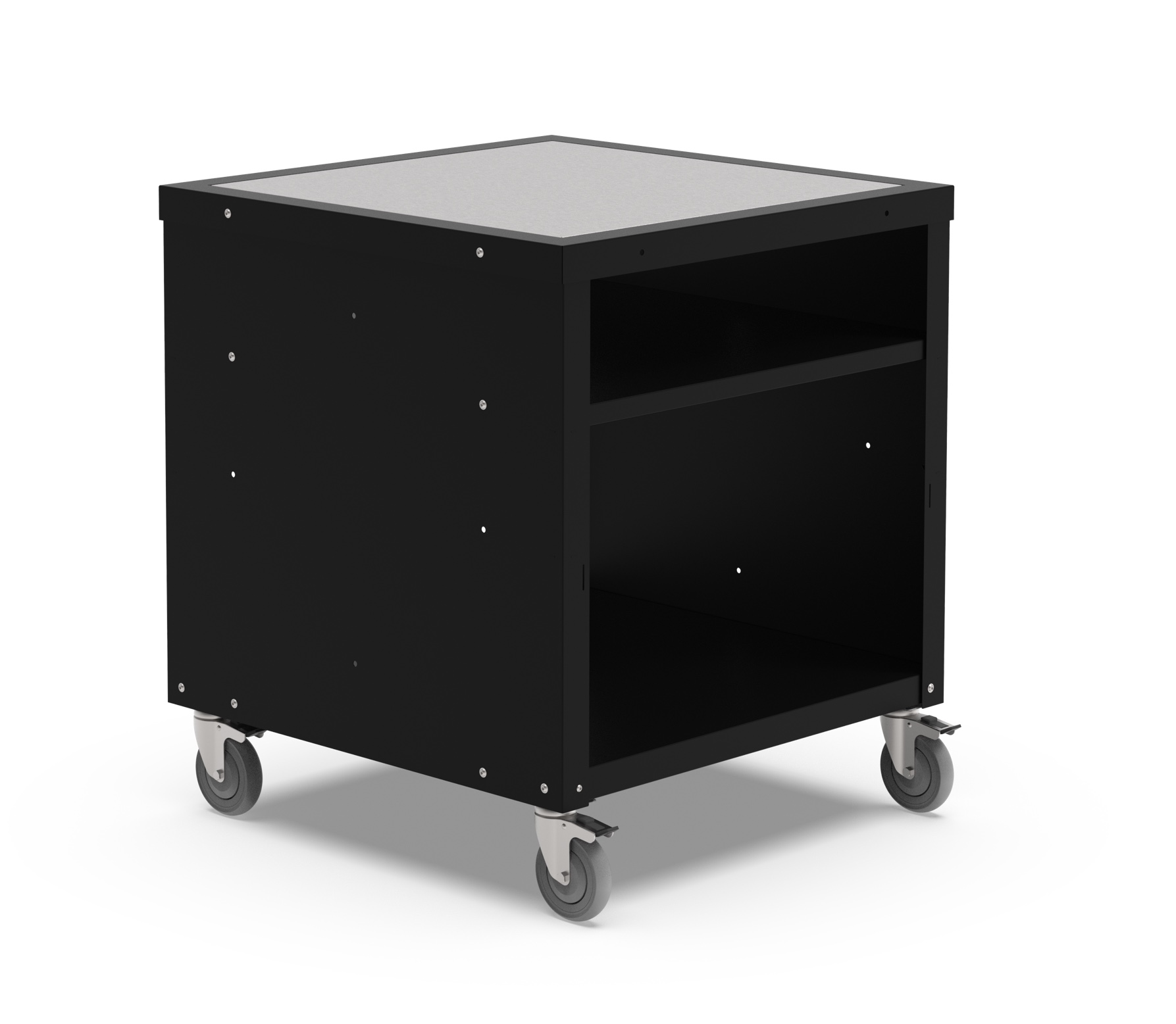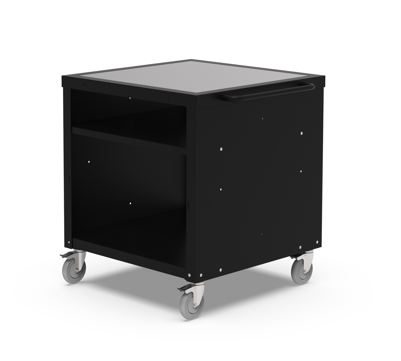 - 4 robuste Rollen mit Bremse für sichere und stabile Mobilität