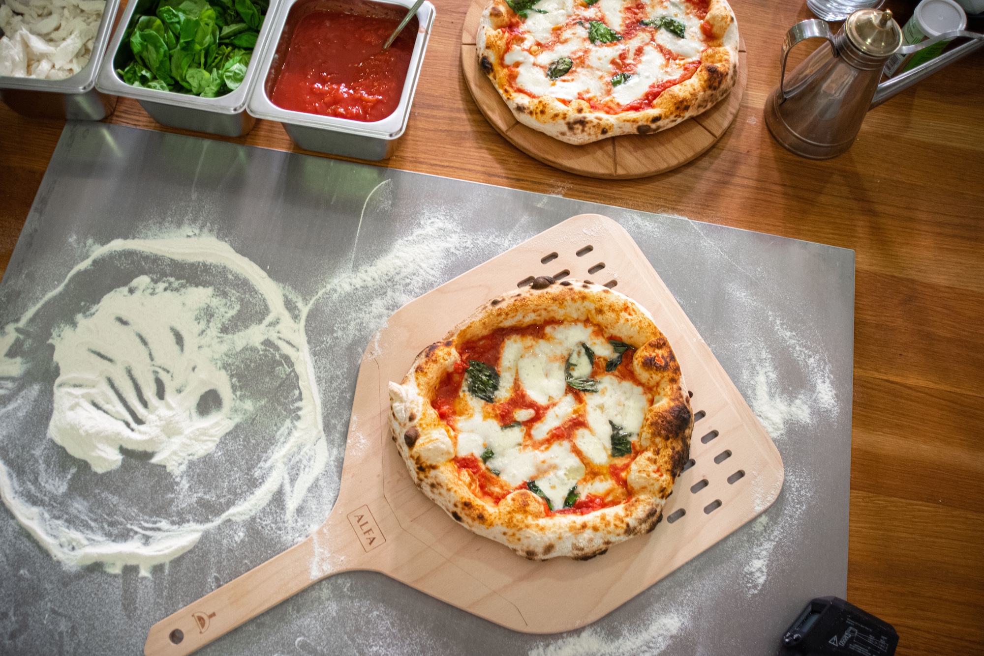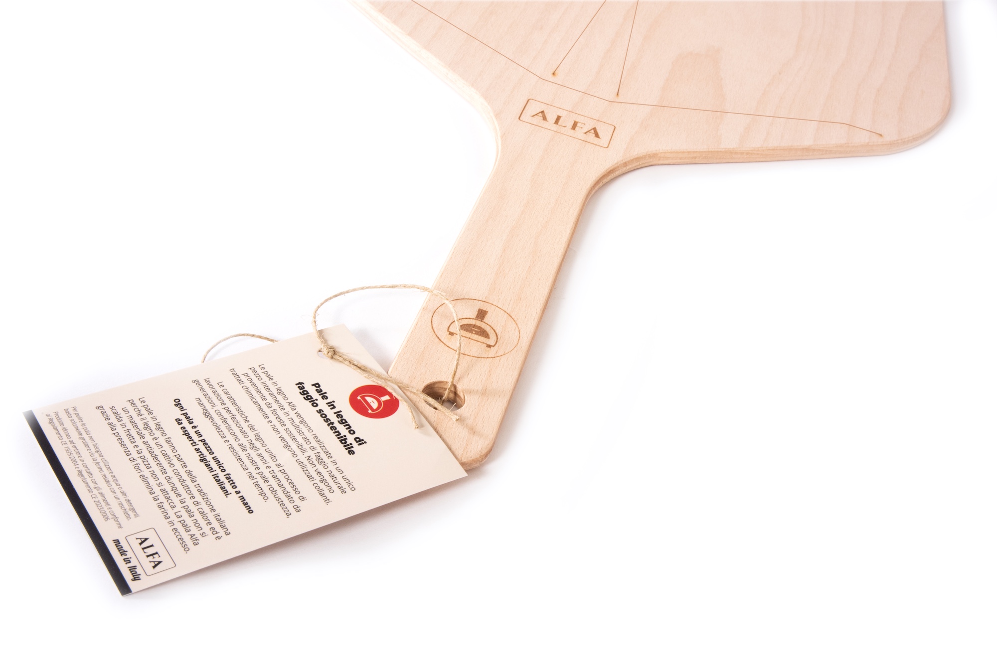 Holzschaufeln sind ein fester Bestandteil der italienischen Tradition. Holz ist nämlich ein Material, das die Wärme nicht leitet und von Natur aus nicht klebend ist, so dass die Pizza leicht in den Ofen geschoben werden kann. Als Ergebnis der Erfahrung der besten italienischen Handwerksmeister ist jede Alfa-Pizzaschaufel aus Holz ein vollständig von Hand gefertigtes Einzelstück.