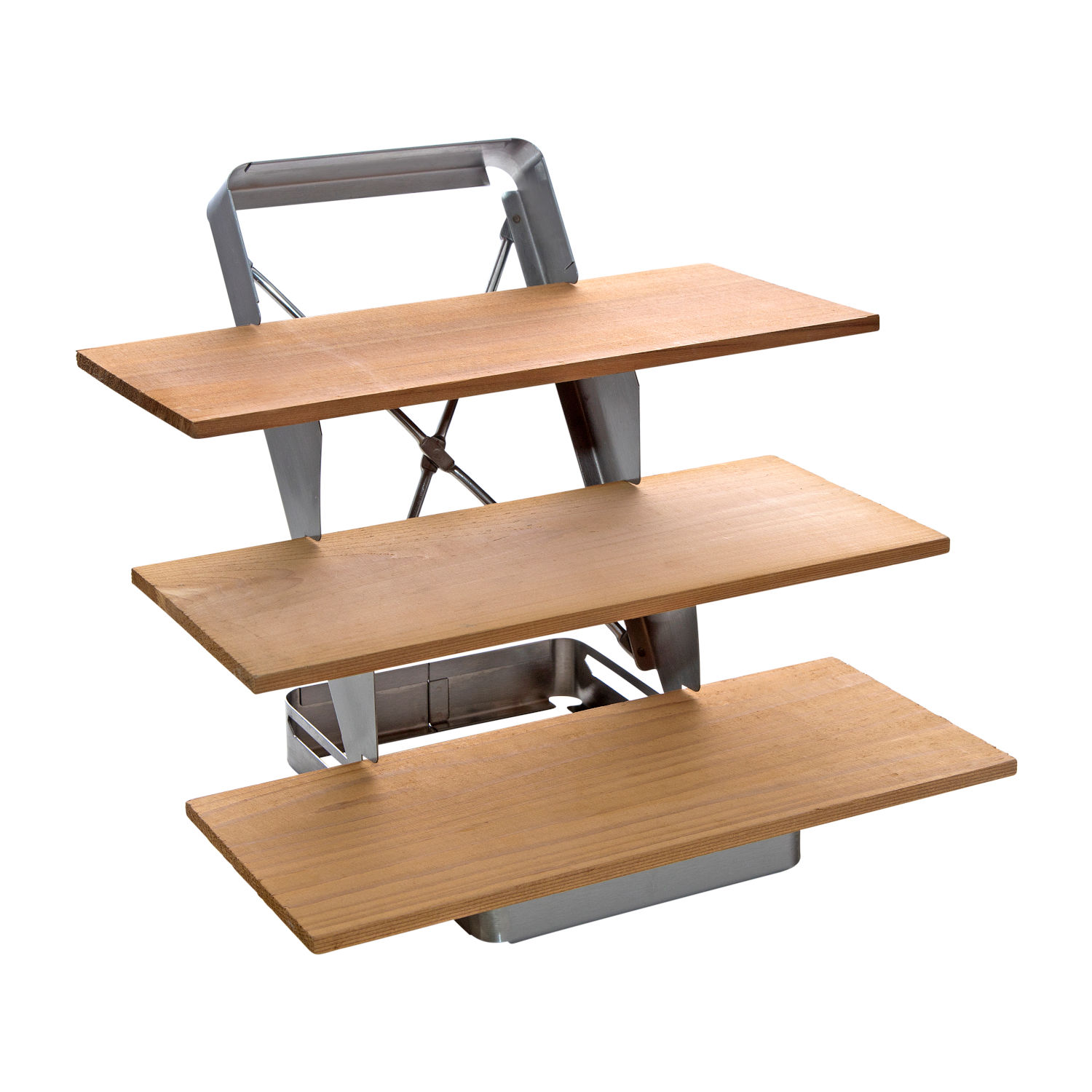 - zusammenklappbarer Halter für 3 Zedernholzplanken