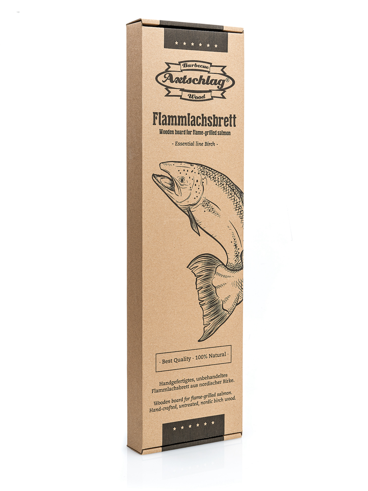 - handgefertigtes, unbehandeltes Brett aus reinem Birkenholz, rostfreier Edelstahl