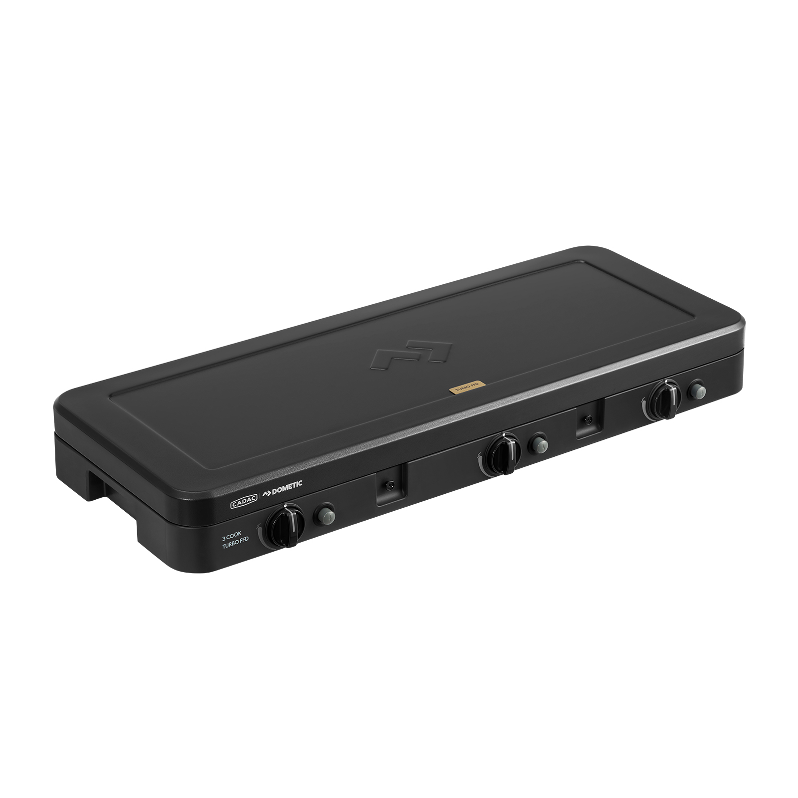 - Kompakter, leistungsstarker Gaskocher mit 3 separat steuerbaren Turbo-Gasbrennern