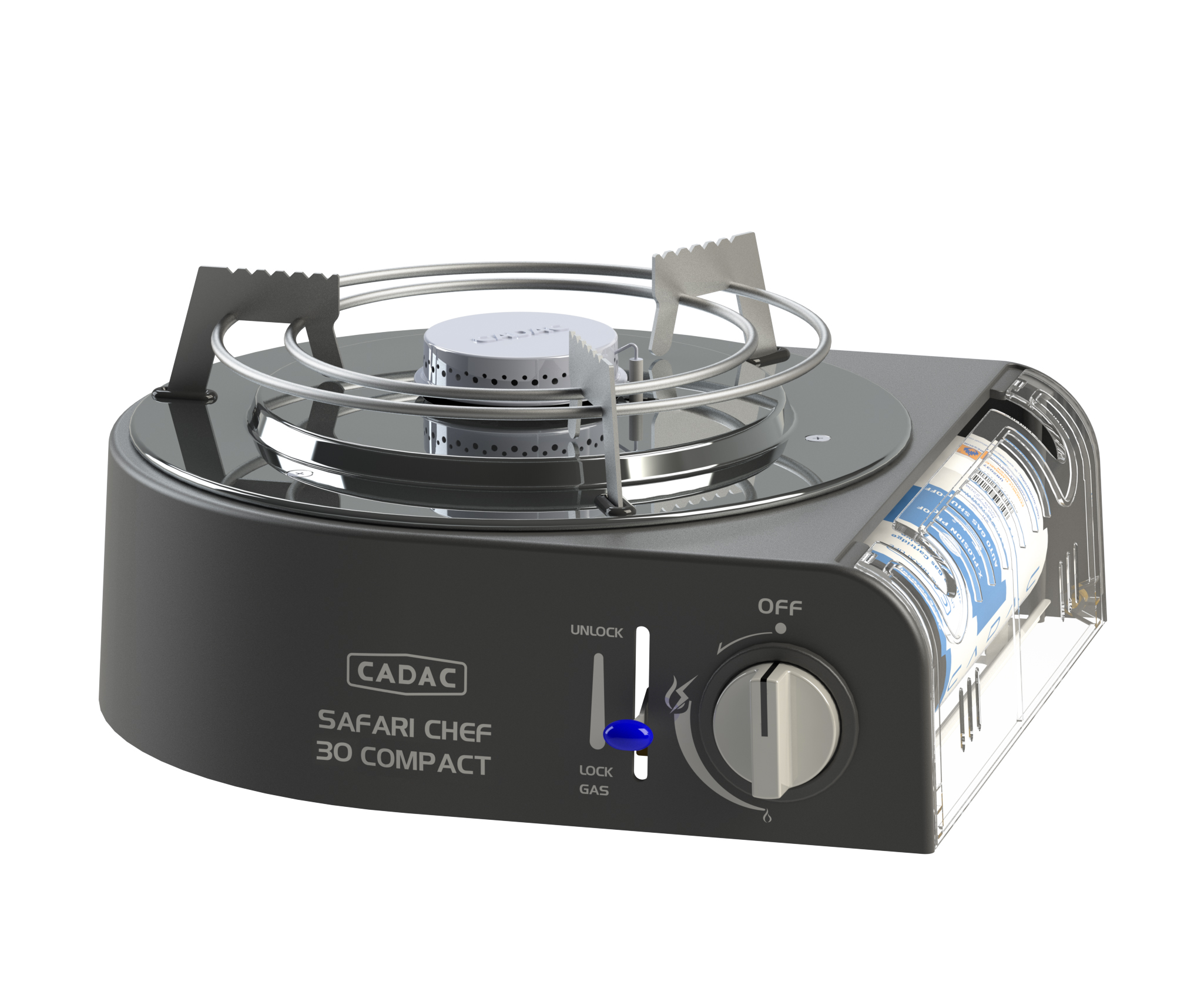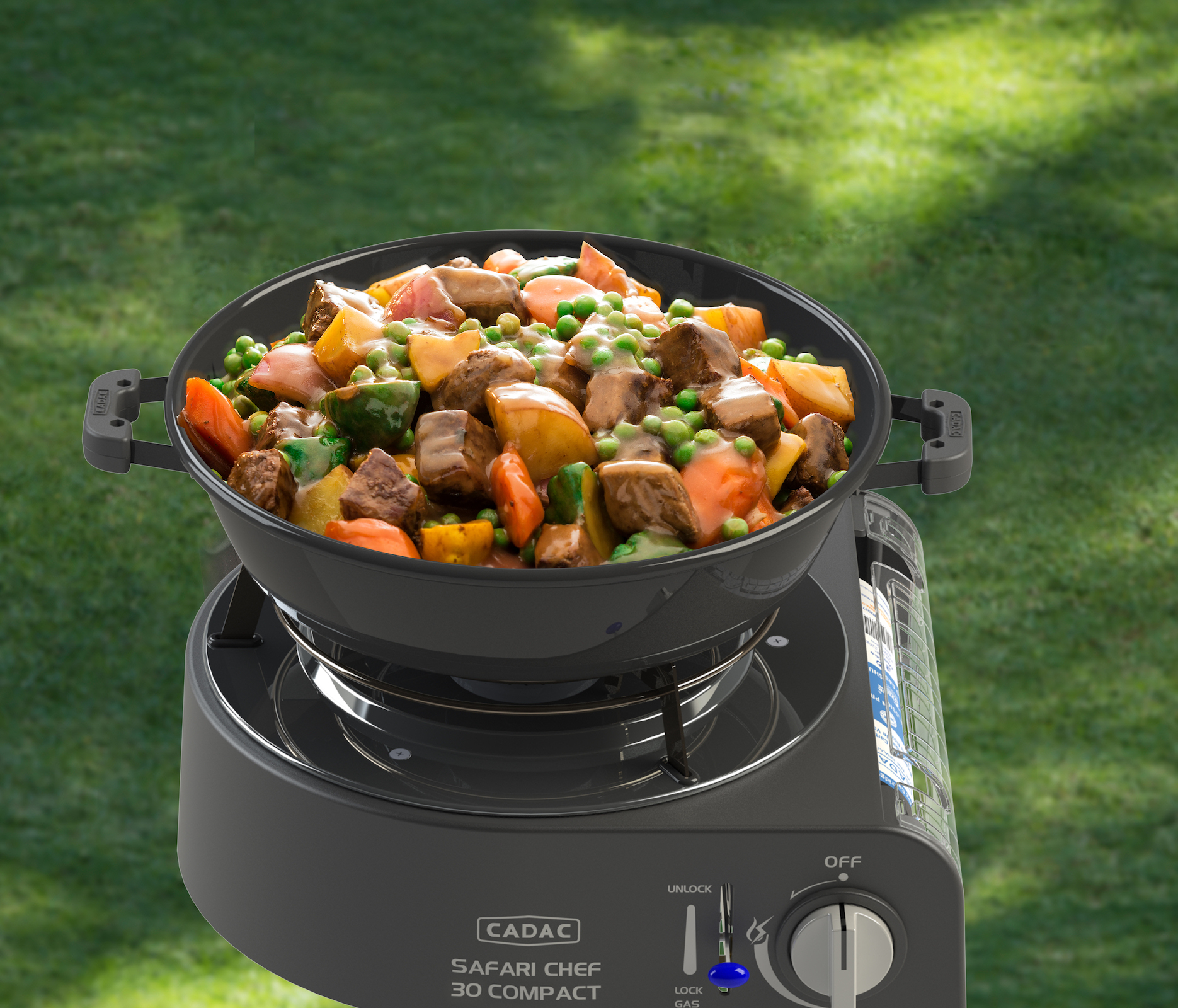 Trotz seiner geringen Größe ist der Safari Chef 30 Compact äußerst vielseitig, da er über verschiedene Kochflächen verfügt: Einen Topständer, ein Grillrost und einen Deckel, der auch als Topf genutzt werden kann. Auf dem Topfständer können Sie problemlos einen Topf mit Suppe oder Nudeln kochen. Der Grillrost ist mit der GreenGrill-Beschichtung von CADAC versehen und eignet sich perfekt zum Braten und Grillen von Fleisch, Fisch und Gemüse. Die Tropfschale fängt Kochrückstände auf, wenn Sie den Grillrost benutzen, dient aber auch als Windschutz, damit der Brenner nicht ausbläst. Eine robuste Trage-/Aufbewahrungstasche ist im Lieferumfang enthalten, so dass Sie den Safari Chef 30 Compact Lite problemlos überallhin mitnehmen können.