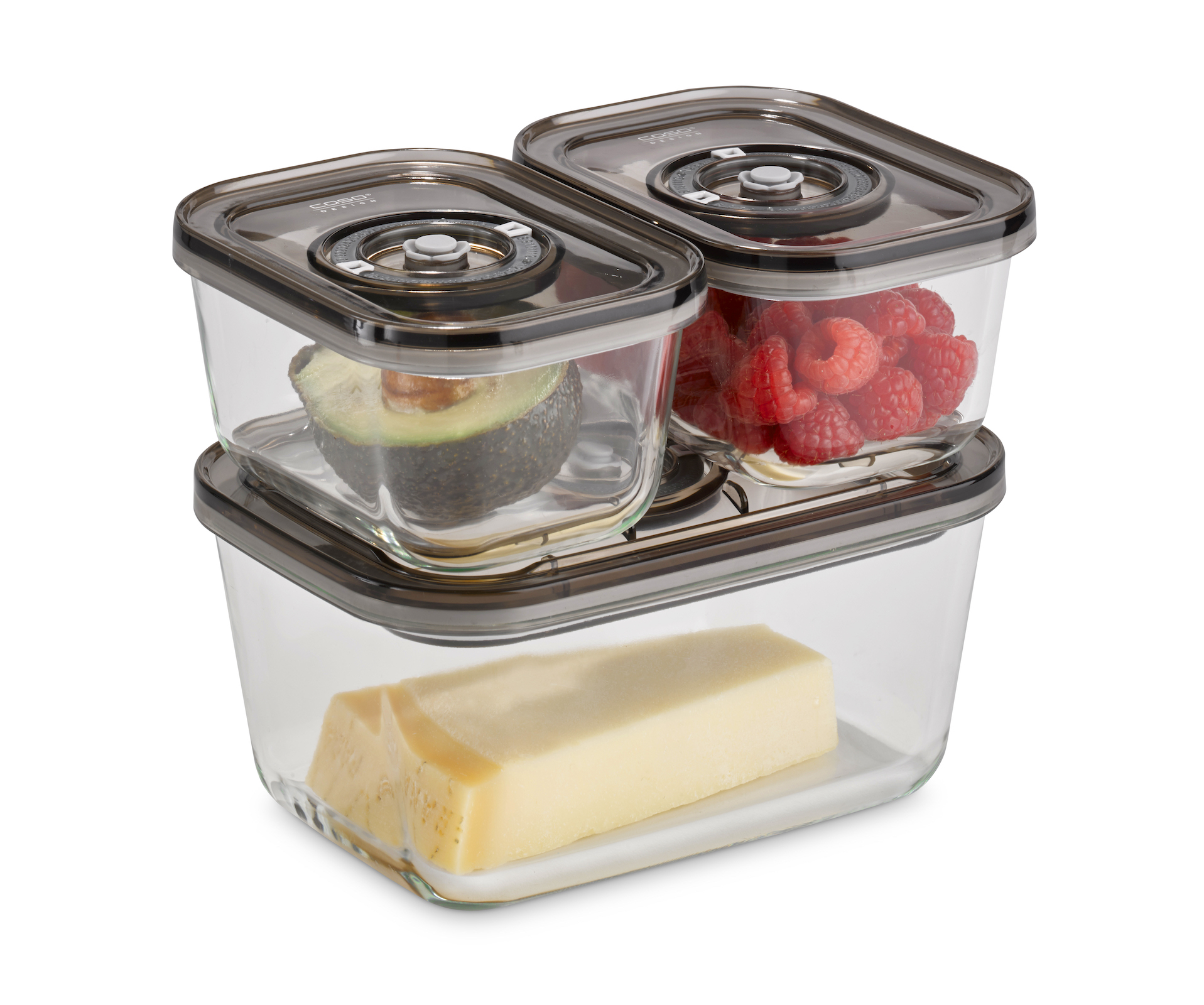 - Stapelbares Vakuumbehälter-Set aus Glas mit Kunststoffdeckel