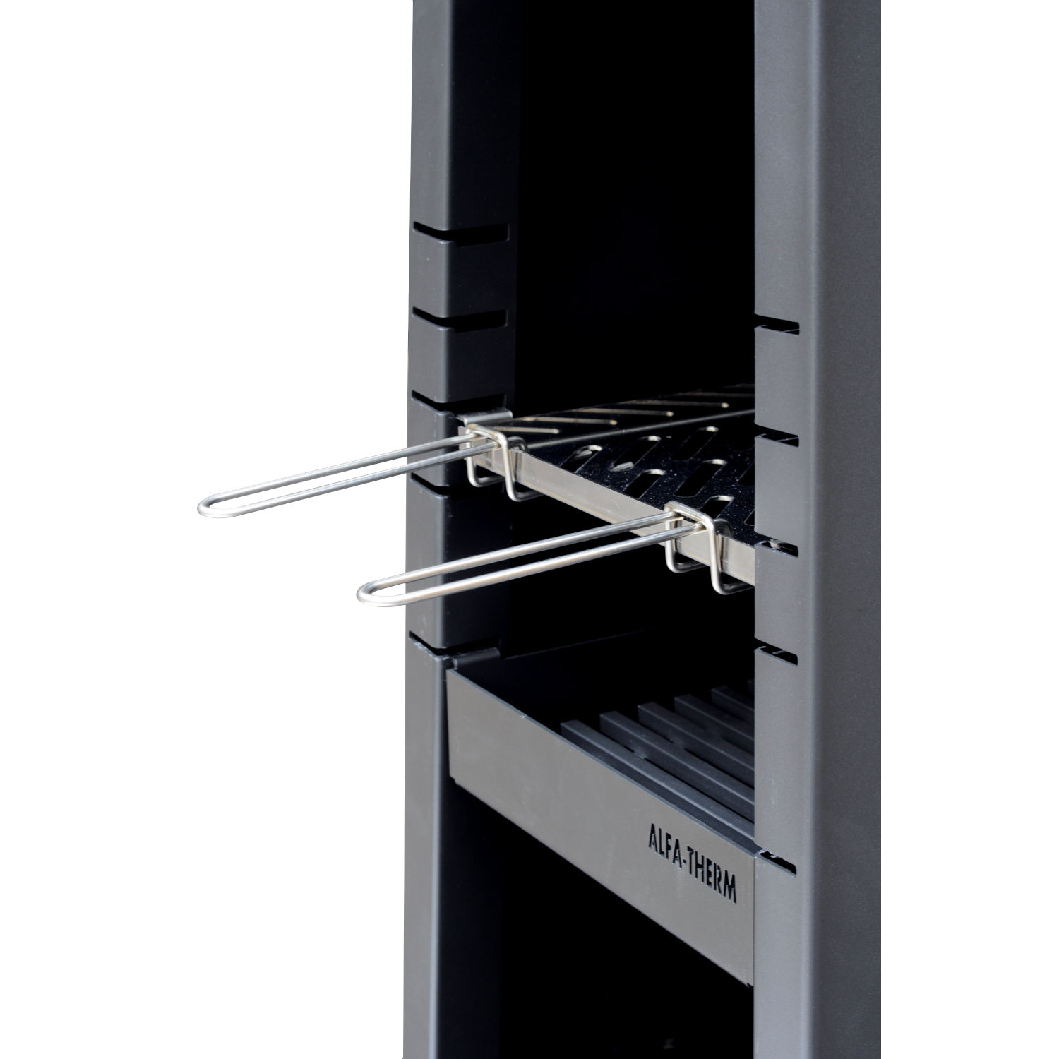 - höhenverstellbarer Grillrost mit abnehmbaren Rostgriffen (Edelstahl)