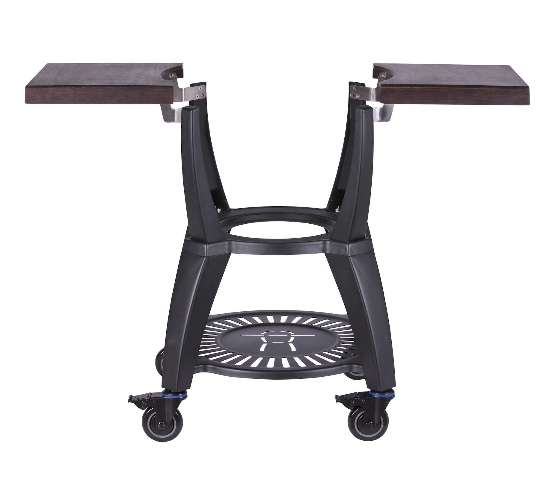Somit wurde ein deutlich stärkeres Gestell entworfen, welches jetzt auch eine Ablage für Zubehör bietet, sowie auch die Seitentische hält – dadurch wirken Grill & Gestell wie eine Einheit. Auch den Anbaukomponenten wurde ein neuer Look verpasst: Seitentische und Griff werden jetzt aus „Heavy Bamboo“ gefertigt. Ein Material, das durch das Karbonisieren von Bambusfasern hergestellt wird. Dazu wird es stark erhitzt und unter extremen Druck gesetzt – das Ergebnis ist ein sehr stabiles und widerstandsfähiges Material mit edlem Look, welches im Vergleich zu anderen Materialien deutlich nachhaltiger ist.