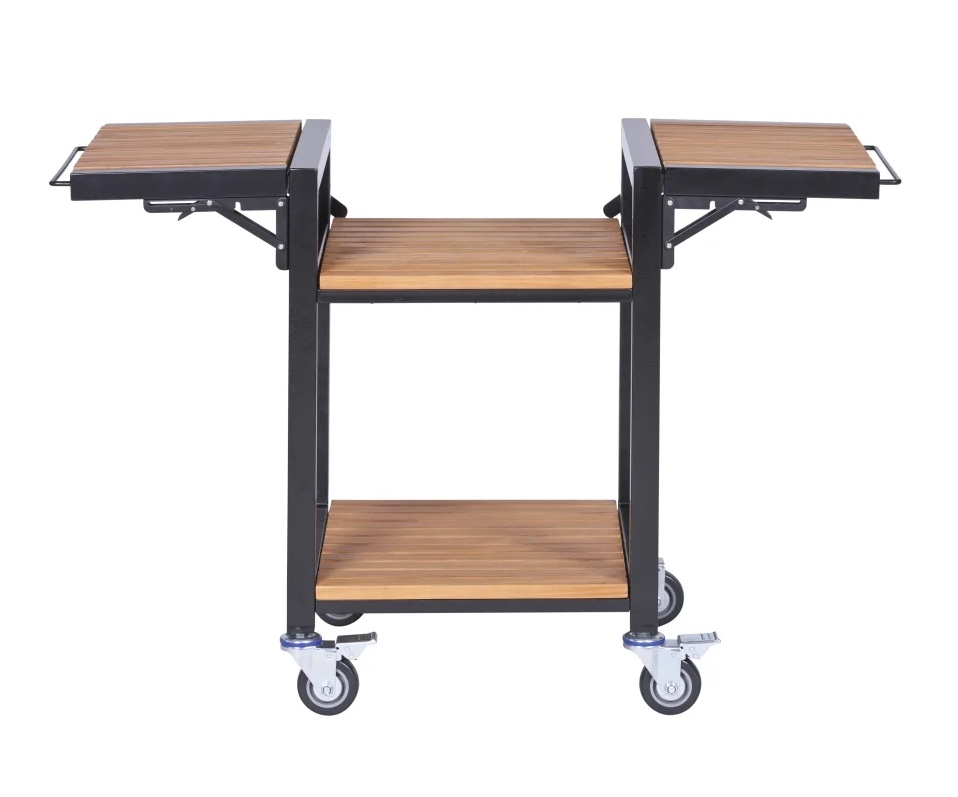 Sehr praktisch sind die Seitentische und Ablagen aus langlebigem Akazienholz, die sich perfekt für Ihre Grillutensilien eignen. Zudem ermöglicht der Wagen eine optimale Arbeitshöhe für bequemes Grillvergnügen. Die integrierte Halterung für die Monolith Feuerplatte auf der Rückseite sorgt zudem dafür, dass auch diese ihren sicheren Platz findet und auf ihren nächsten Einsatz wartet.