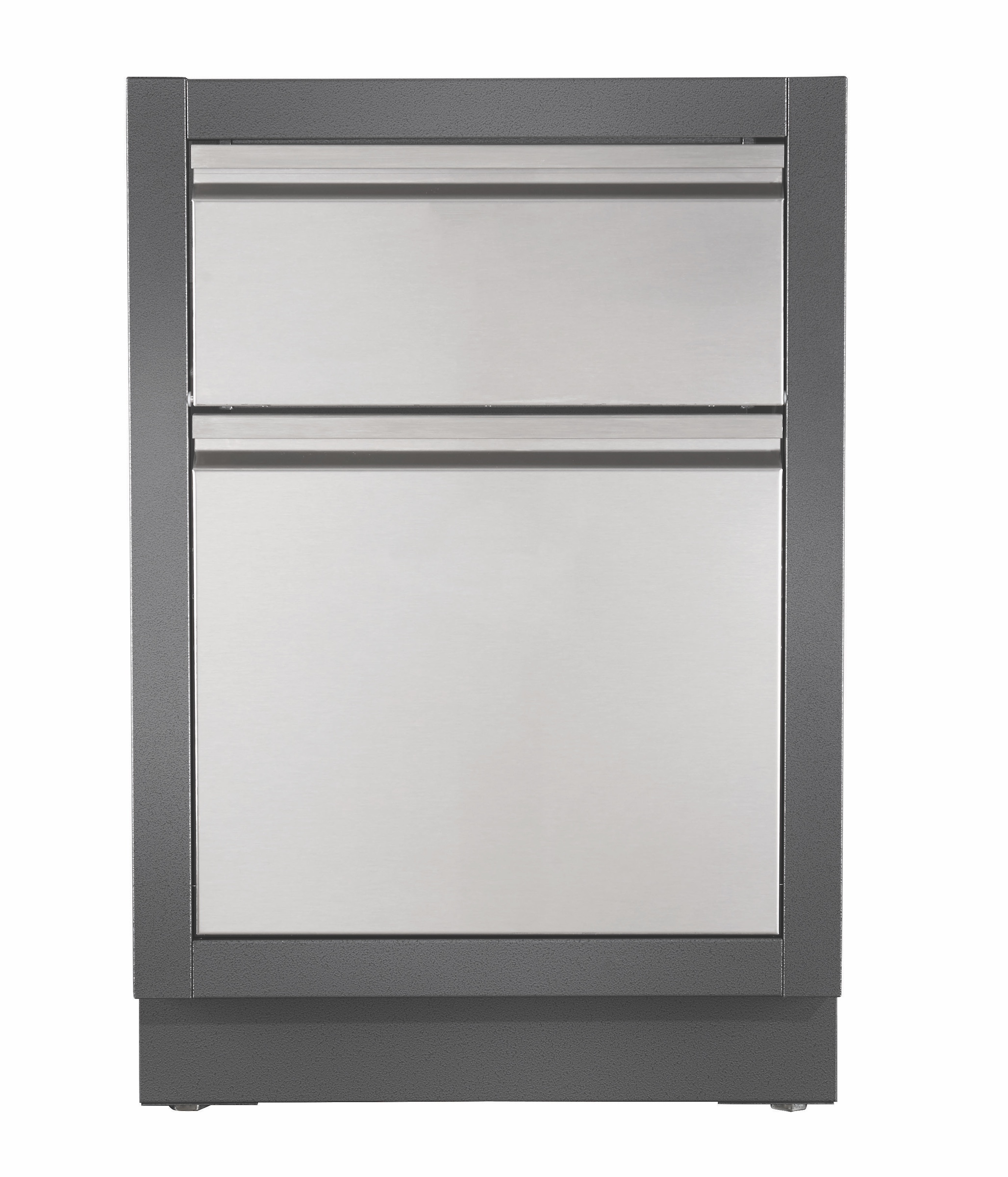 Dieser kohlefarbene, pulverbeschichtete, verzinkte Schrank zeichnet sich durch eine erhöhte Haltbarkeit aus, die durch die doppelschichtige Oberflächenbehandlung erreicht wird und besitzt eine Tür und Schubladenfront aus Edelstahl. der Einbau ist kinderleicht mit Gas- und Elektro-aussparungen. Nivellierfüße sorgen für eine gerade Oberfläche, auch wenn Ihre Terrasse nicht komplett eben ist. Ergänzen Sie Ihre perfekte OASIS-Outdoorküche um diesen Schrank zusammen mit den Grillaufsätzen und Grillunterschränken Ihrer Wahl.