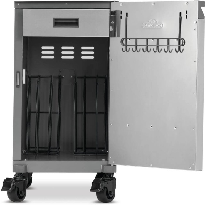Ob beim Vorbereiten, Grillen oder Aufräumen – mit diesen Seitenschränken können Sie ganz leicht Ordnung halten und stilvoll grillen. Optisch sind die Unterschränke perfekt an die Napoleon Prestige 500 Edelstahl-Modelle von 2025 abgestimmt.