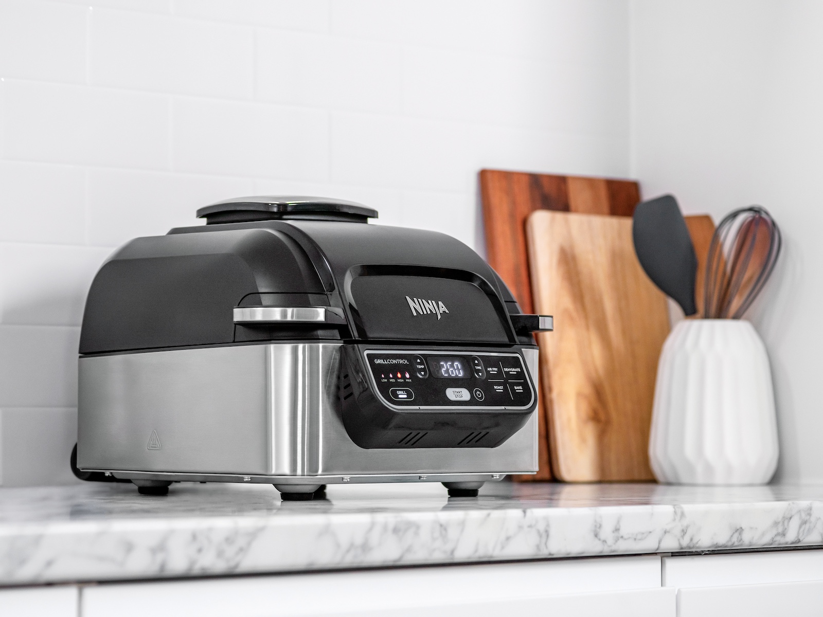 Stellen Sie sich vor, Fisch, Fleisch und Gemüse mit köstlichen Holzkohlegrill-Aromen in Ihrer eigenen Küche zuzubereiten. Mit dem Ninja Foodi Grill & Heißluftfritteuse können Sie schnell und einfach Ihren Lieblingsgerichten ein authentisches Holzkohlegrill-Finish verleihen.