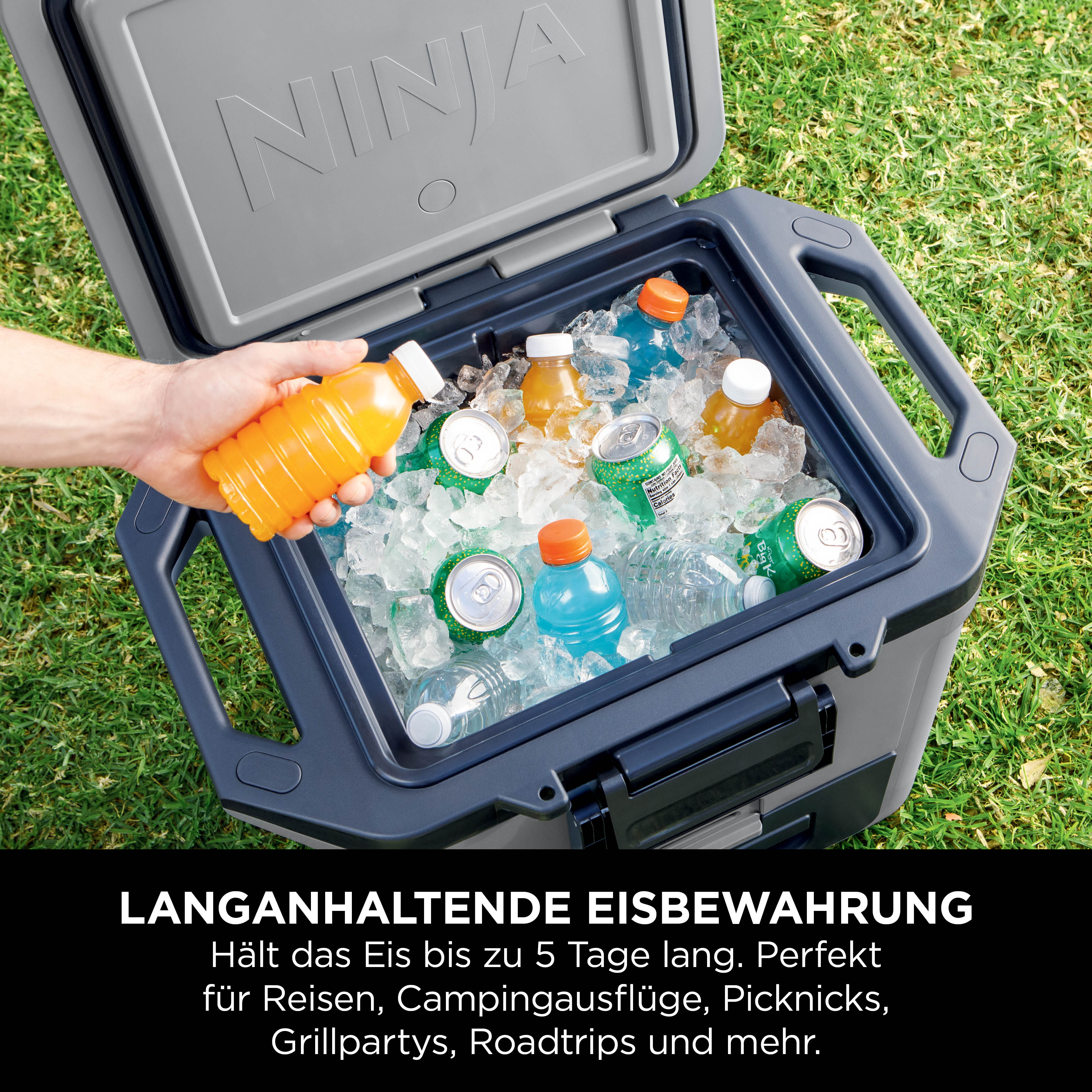 Lernen Sie die Ninja FrostVault kennen, die Kühlbox mit erstklassiger Eisspeicherung und trockener Lagerung bei Kühlschranktemperatur für mehrere Tage. Die Ninja Kühlbox hält das Eis bis zu 6 Tage lang kalt. Perfekt für Campingausflüge, Picknicks und alle weiteren Outdoor-Abenteuer. Die große Kapazität von 28 Litern bietet Platz für bis zu 48 Dosen ohne Eis oder 26 Dosen mit Eis. Ausreichend Platz für all Ihre Lieblingsgetränke, von Bier oder Wein bis zu Wasser und Softdrinks.