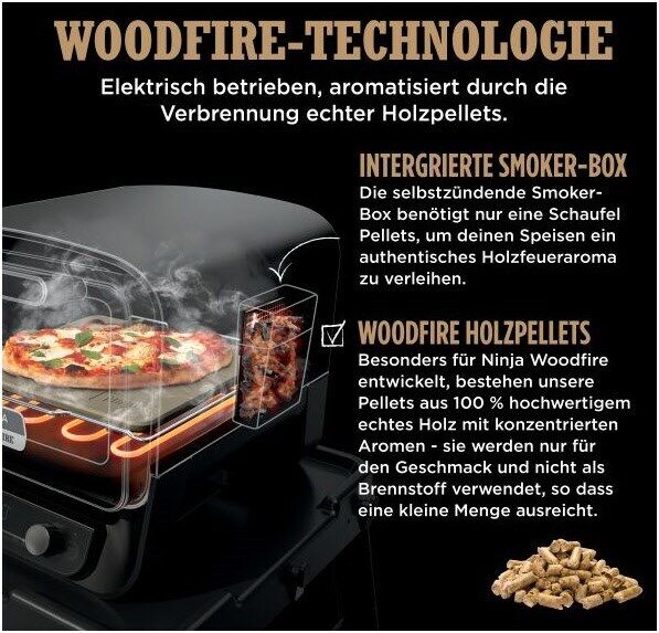 - Woodfire Technologie: Verleiht Speisen bei allen Funktionen ein unvergleichliches Raucharoma