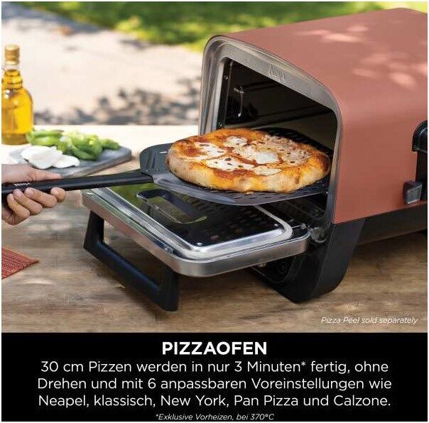 Backen Sie hausgemachte Pizzen ohne Wenden in weniger als 3 Minuten, mit 6 Pizzavoreinstellungen für jeden Geschmack: Neapel, klassisch, New York, Pan Pizza und Calzone.