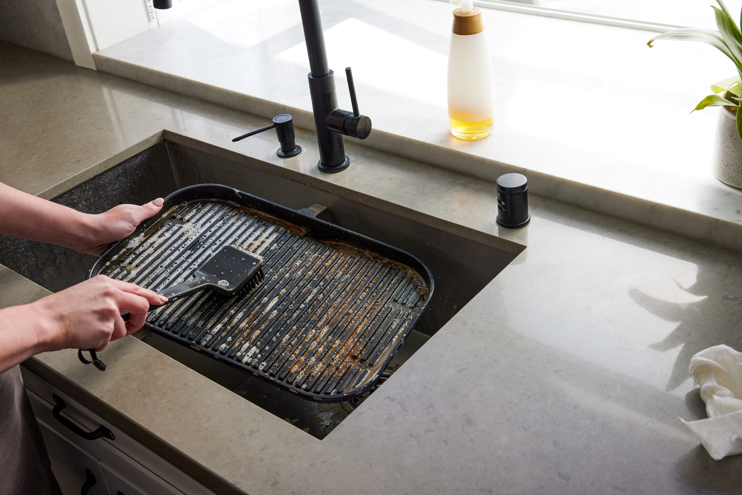 - Reinigungsbürste mit kräftigen, flexiblen, abgewinkelten Nylonborsten