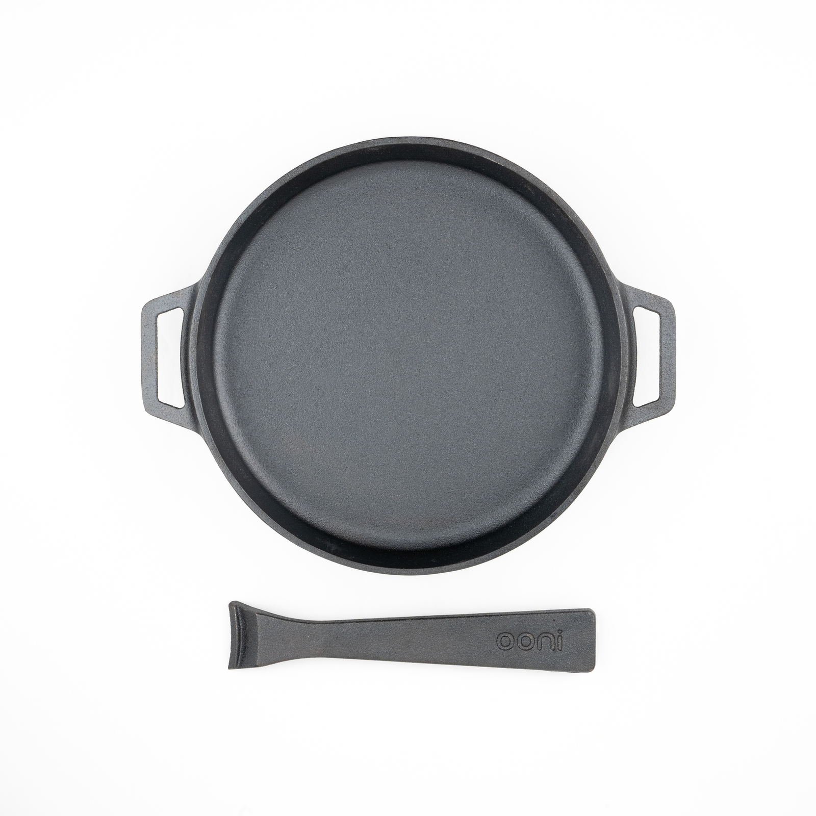 - Ooni Bratpfanne aus Gusseisen mit Griff und Untersetzer