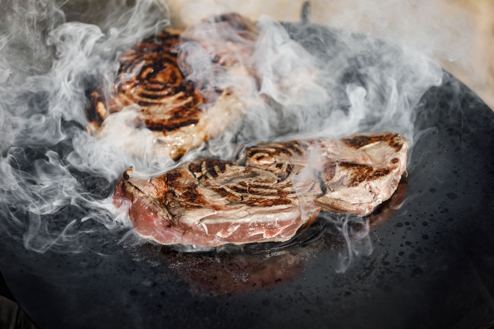 Während er in der Grillplatte auch dafür sorgt, dass Sie Grillgut sicher mittig auf der Platte platzieren können, dient er als Einsatz in dem Kochaufsatz als Mini-Grillrost und sichere Standfläche für Feuertöpfe und -pfannen. Durch den Einsatz für die Atago Plancha-Grillplatte entstehen bei Steak, Filet und Gemüse typische Grillstreifen, während auf der Plancha-Platte gleichzeitig Bratkartoffeln oder Spiegeleier braten. So können Sie eine krosse Beilage zubereiten und gleichzeitig Steak grillen, eine deftige Grillsauce oder eine Vorsuppe mit herzhaften Suppeneinlagen zubereiten. Darüber hinaus dient der Einsatz als sicherer Standort für Kochutensilien, während Sie weiter auf der Plancha-Platte grillen.