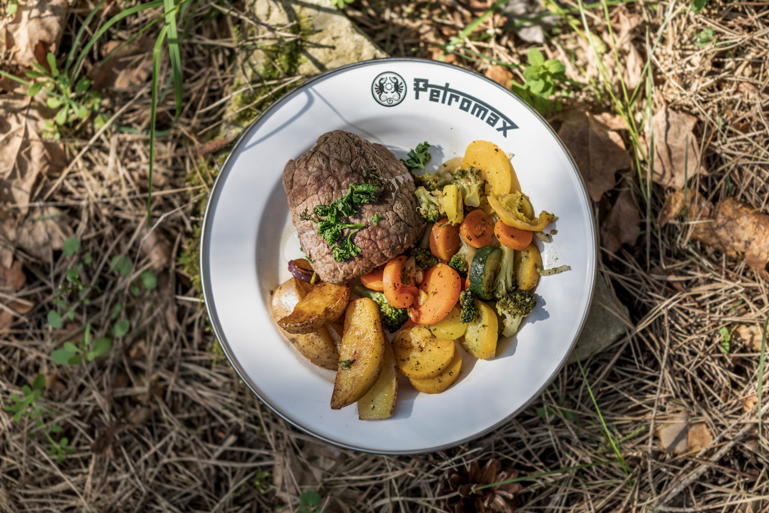Egal, ob große Mahlzeiten wie saftige Rindfleischburger mit Kartoffelspalten oder würzige Schaschlik-Spieße. Die Petromax Emaille Teller stellen immer die optimale Lösung zum Servieren dar. Dank ihrer glatten Oberfläche lassen sich die Teller im Anschluss leicht reinigen.