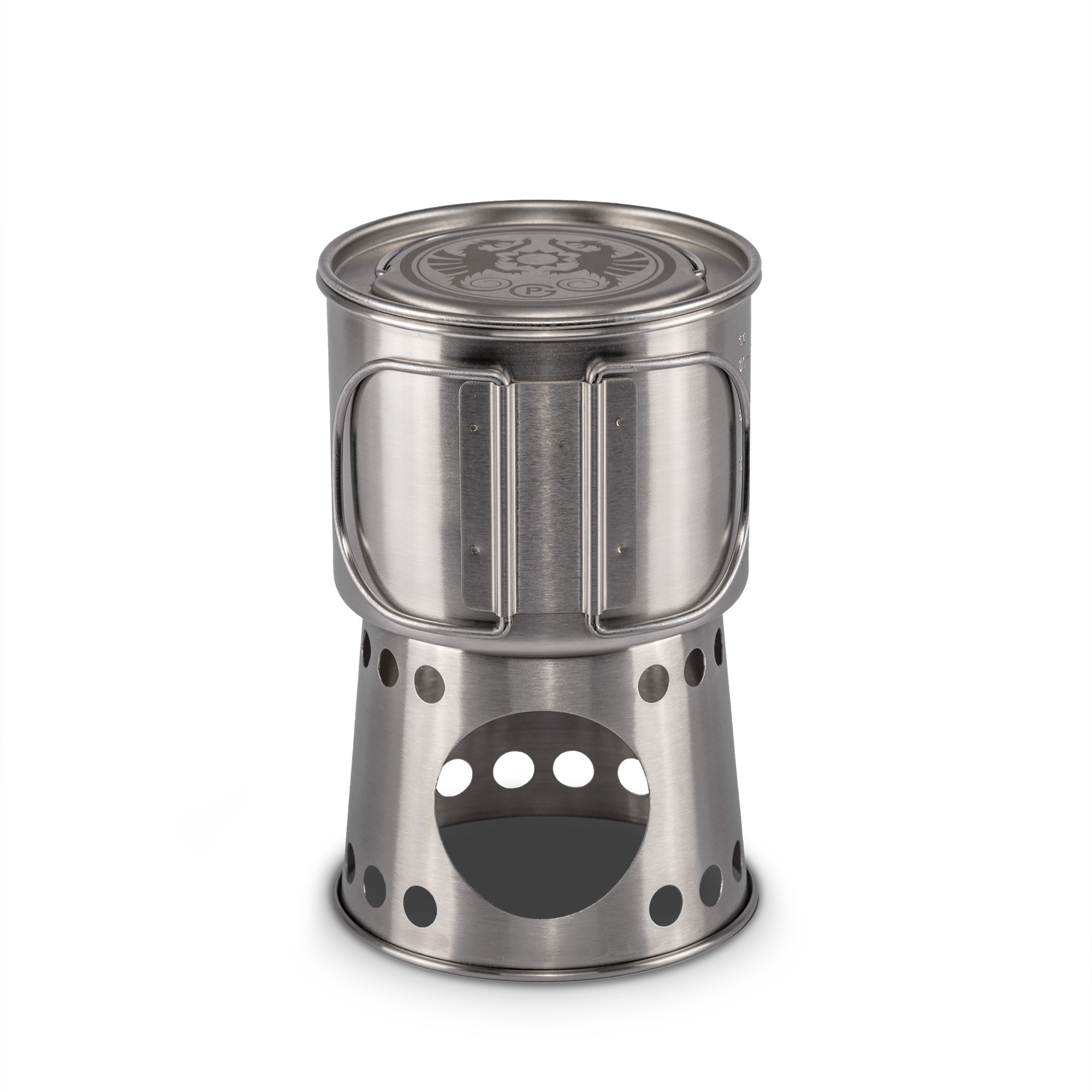 Im Inneren des Kochbechers befindet sich ein praktischer Brennstoffbehälter. Mit ihm können Sie mühelos eine sichere Kochstelle einrichten, die vor Wind und Feuchtigkeit geschützt ist. Der Behälter bietet ausreichend Platz für kleines Brennholz, einen Spirituskocher oder jedes andere gängige Brennmaterial, das Sie auf Ihrem Abenteuer begleitet. Zusätzlich können Sie Platz sparen, indem Sie Ihre Trinkflasche in den Becher stecken, oder ihn mit anderen wichtigen Ausrüstungsgegenständen, wie Brennholz und Feuerzeug, füllen.