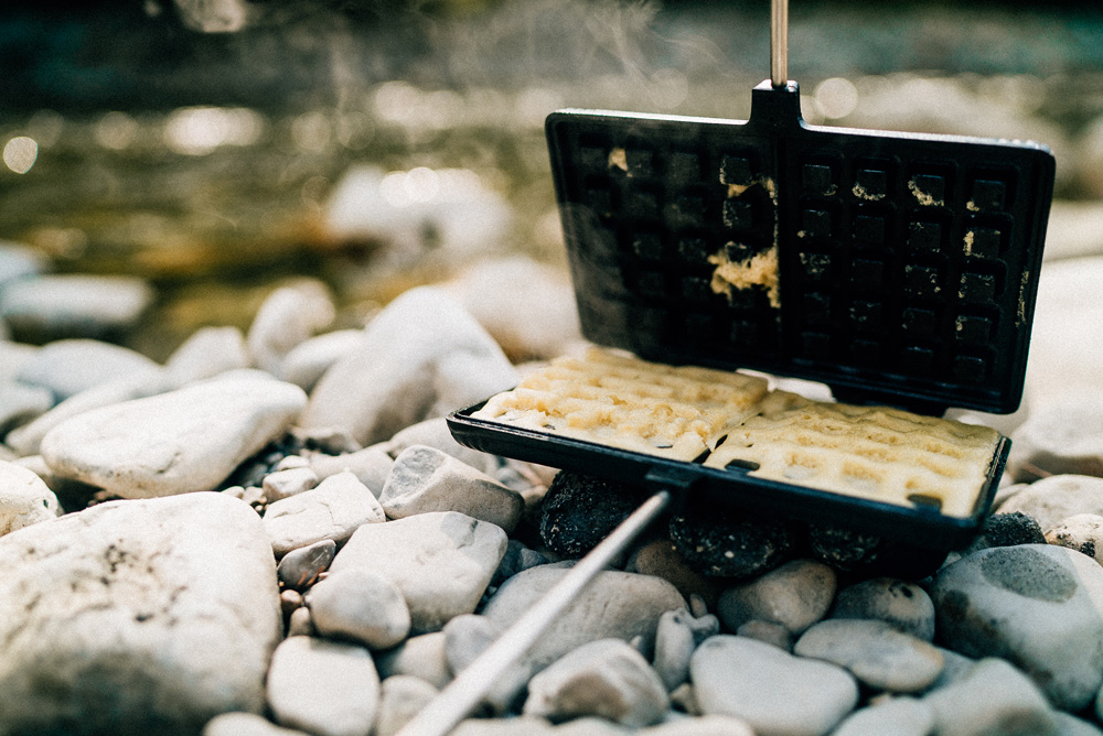 - Massives Waffeleisen zur Zubereitung von leckeren Waffeln direkt im Feuer oder in heißer Glut