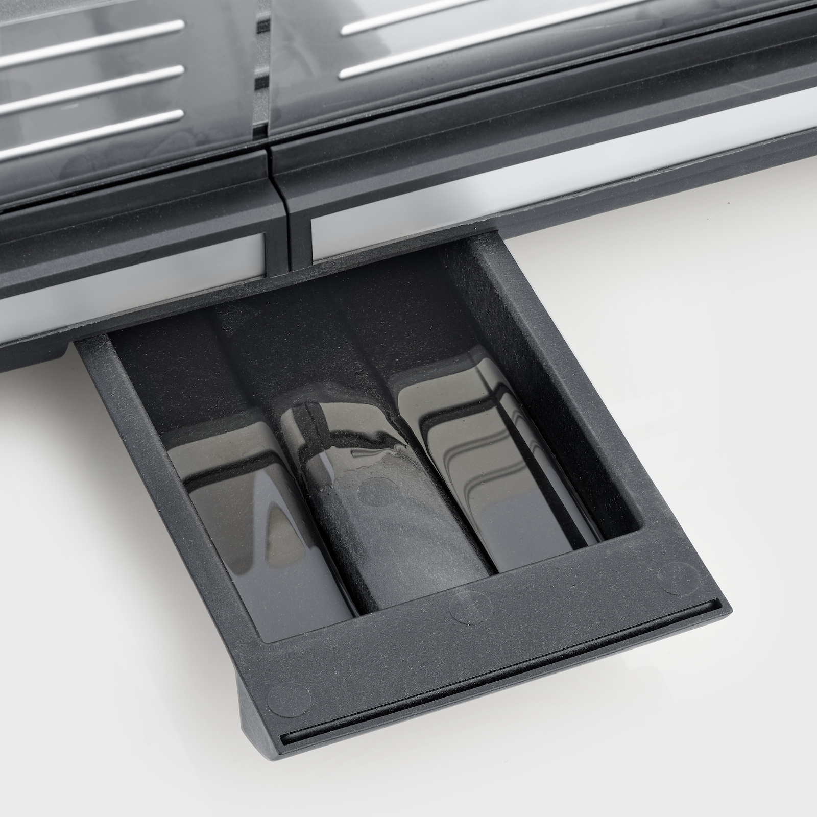 - Einfache Reinigung dank integrierter Fettauffangschale