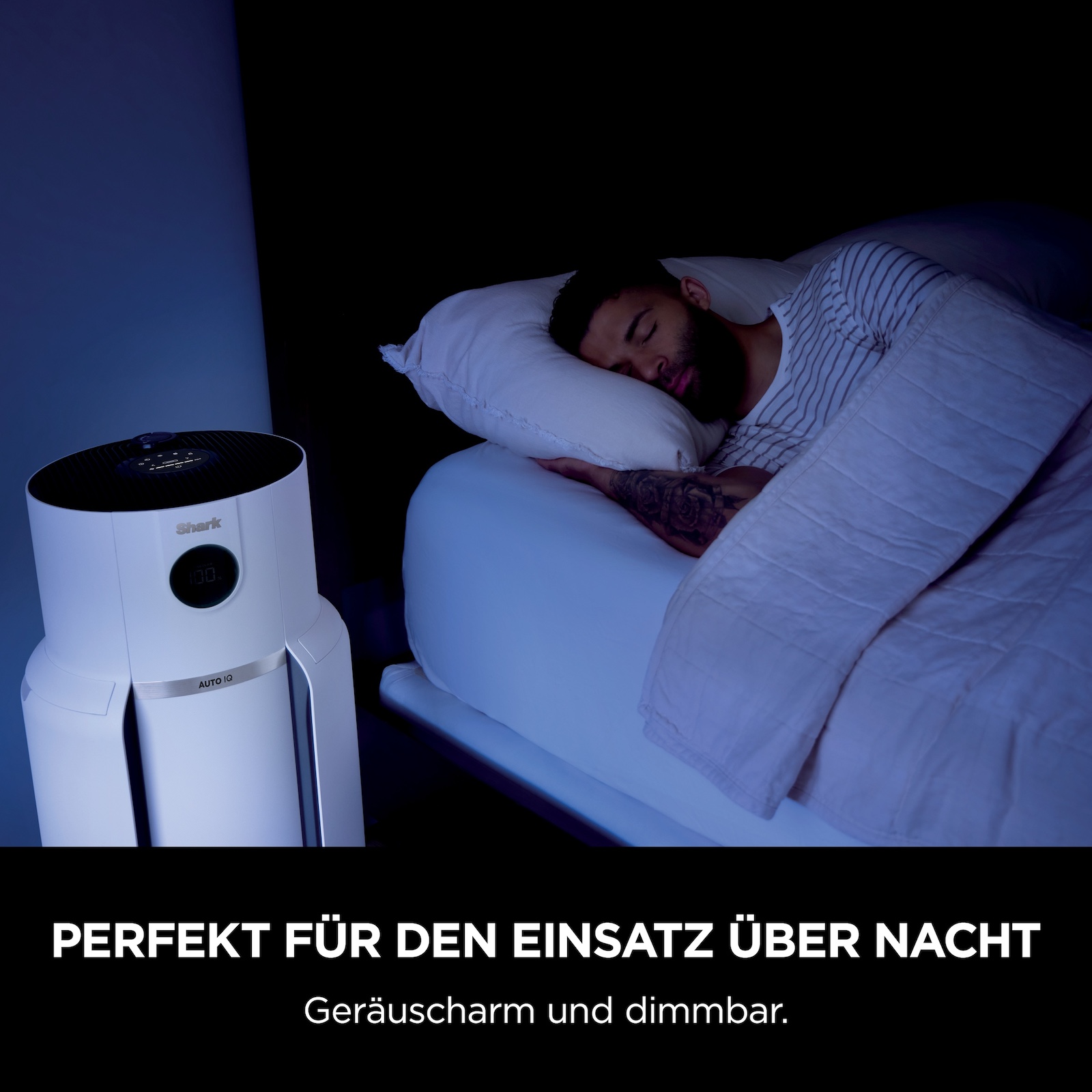 Kraftvolle Reinigung und Geruchsneutralisierung für große Räume mit einem HEPA-Luftreiniger, der die Luftqualität für zuverlässig gereinigte Raumluft überwacht und automatisch die Reinigungsleistung anpasst. Der leistungsstarke Luftreiniger eignet sich ideal über Nacht, da er geräuscharm und dimmbar ist.