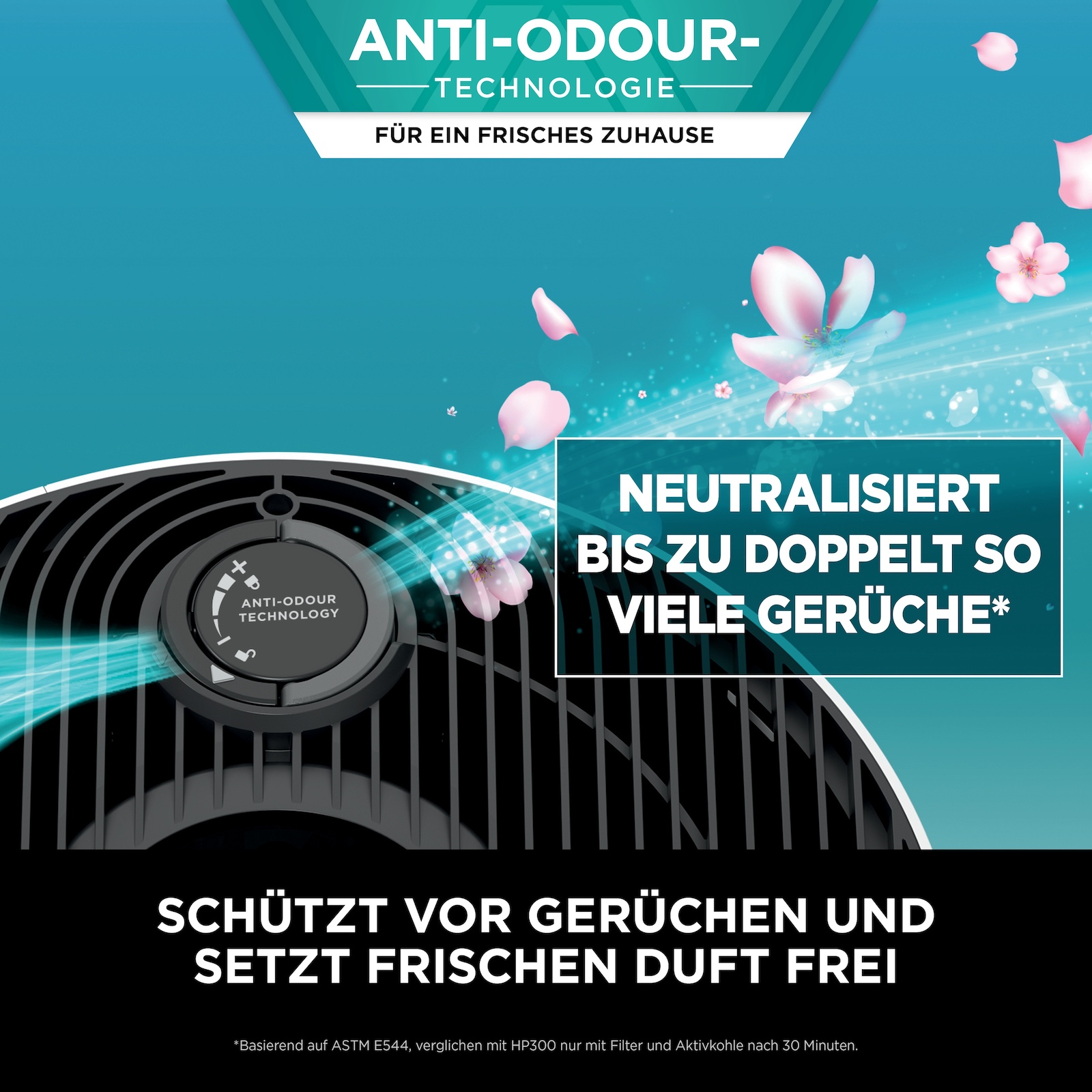 Die Anti-Odour-Technologie schütz vor Gerüchen und verströmt einen frischen Duft beim Reinigen. Die integrierte Kartusche neutralisiert Gerüche, die im Alltag entstehen, wie vom Kochen, Rauchen, von Haustieren und mehr. Mit einem Drehschalter lässt sich die Duftintensität leicht anpassen. Clean Sense IQ überwacht die Luftqualität, reagiert automatisch auf Veränderungen der Umgebung und passt die Reinigungsleistung an. Die verbesserte Luftqualität wird in Echtzeit aktualisiert und auf einem leicht lesbaren LED-Bildschirm angezeigt.