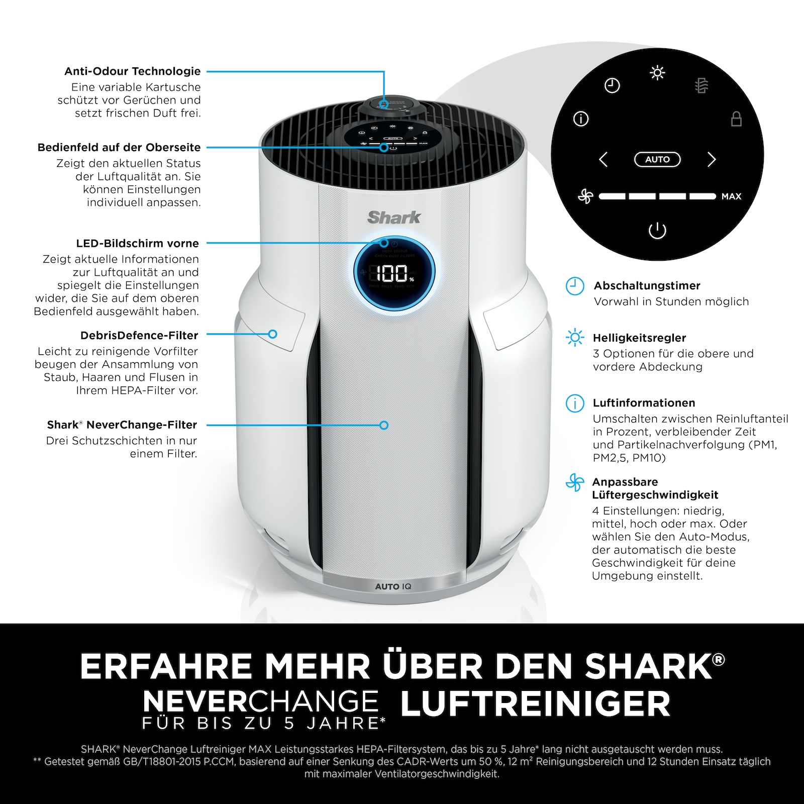 - Bis zu 5 Jahre lang kein Filteraustausch erforderlich dank Shark NeverChange Filtersystem