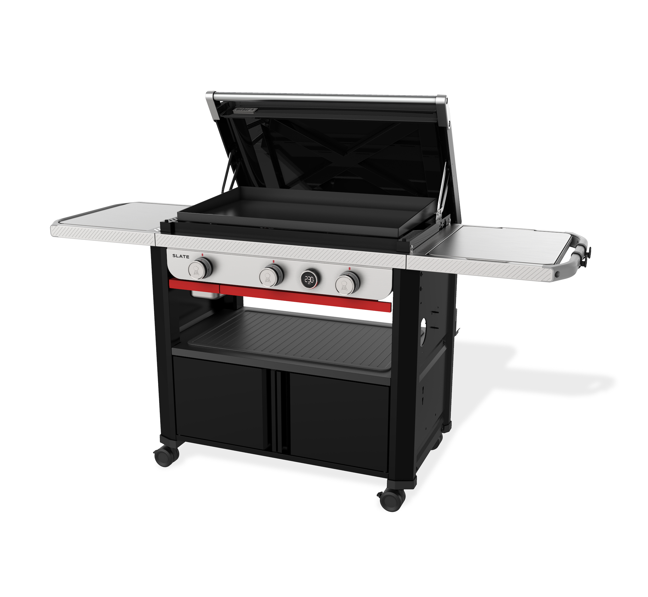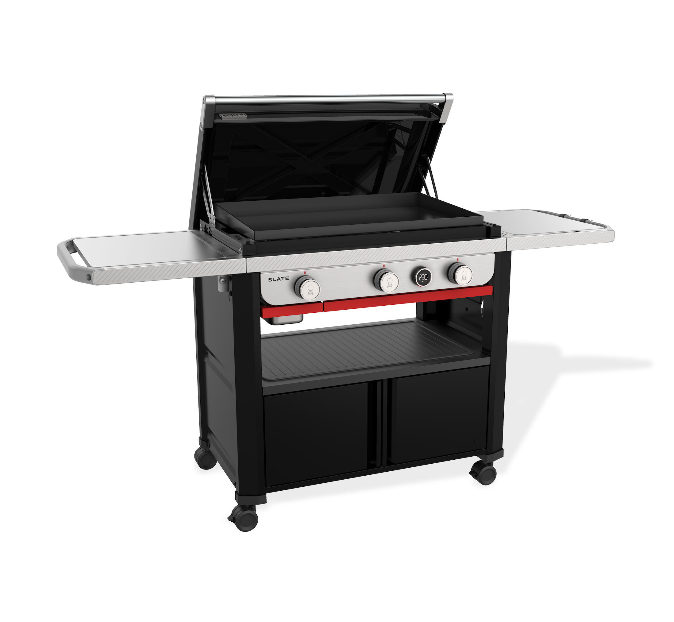 Und mit dem Weber Works Zubereitungs-, Grill- und Aufbewahrungssystem können Sie Ihre Grill- und Reinigungsutensilien griffbereit aufbewahren, Speisen und Gewürze von der Küche zur Plancha transportieren, den Seitentisch in eine Zubereitungsstation verwandeln und Ihr Equipment in dicht verschlossenen Behältern verstauen (Zubehör separat erhältlich).