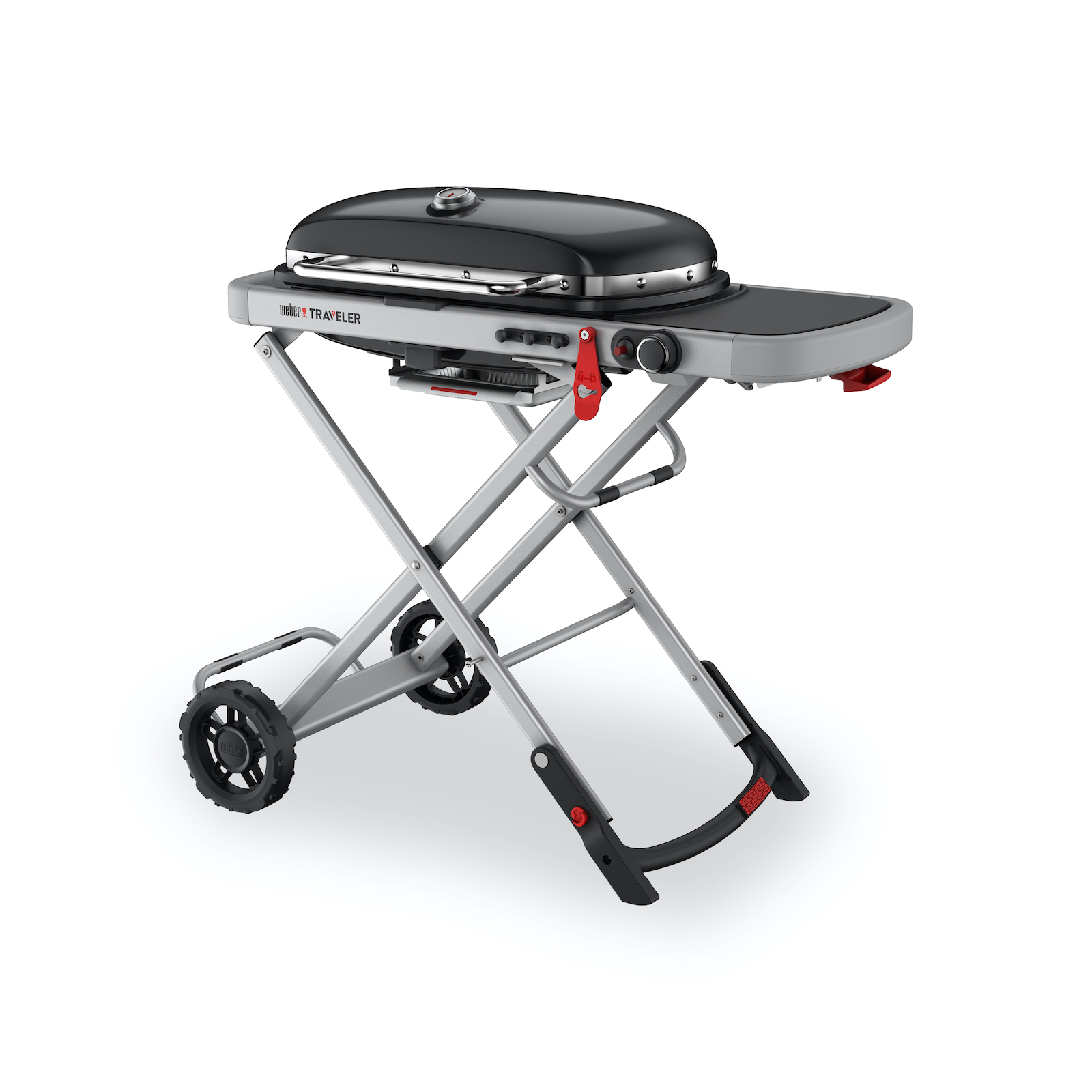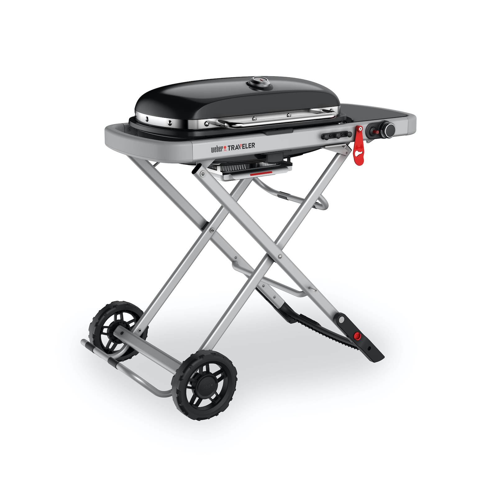1x Weber Traveler Portabler Gasgrill Black mit Rollwagen in Silber 9010079