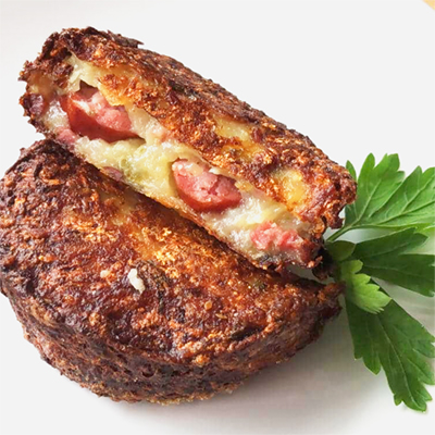 - Lyoner Wurst-Lollis und Dippelabbes-Pralinen mit Mettwurst auf Rahmsauerkraut und gefüllte Klöße