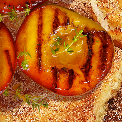 - Rostige Ritter mit gegrillten Pfirsichen und Heidelbeer-Ahornsirup