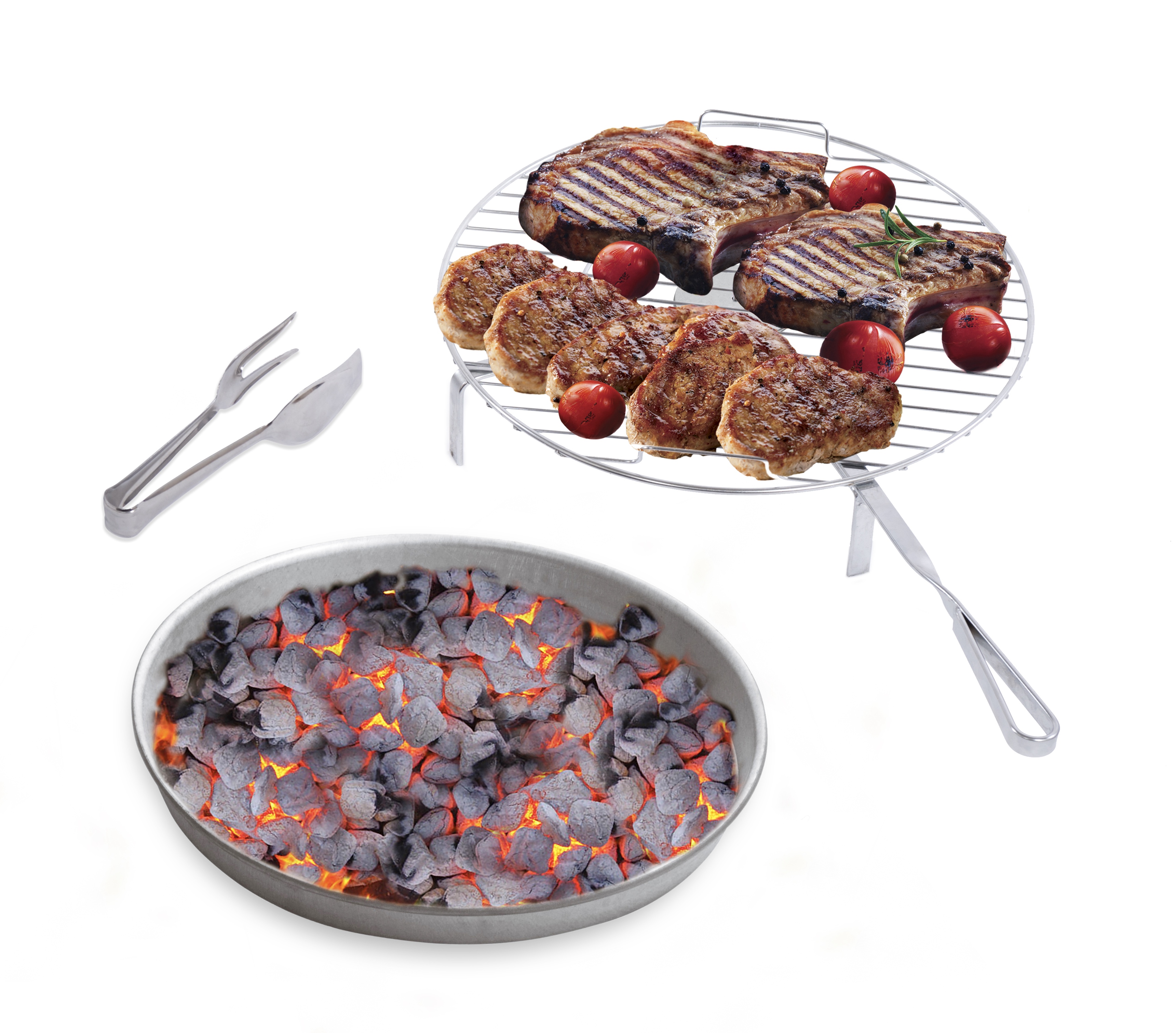 - Optimale Kontrolle der Garvorgänge, dank des drehbaren Grillrosts und der Grillzange
