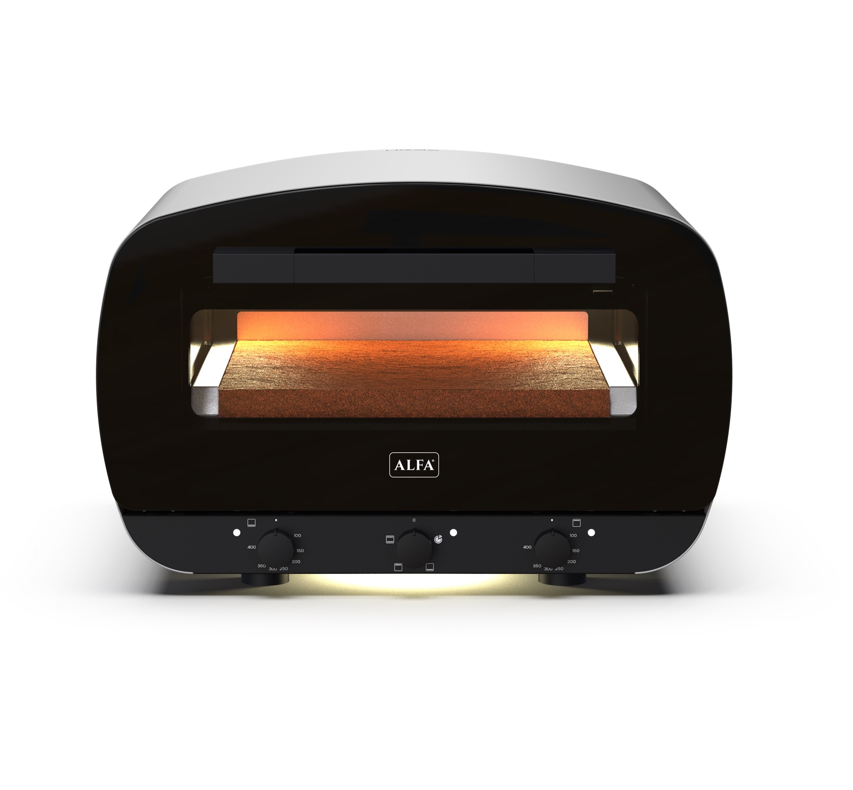 Ob drinnen oder draußen, URBE passt sich Ihren Bedürfnissen an. Dank seines robusten Designs können Sie URBE das ganze Jahr über verwenden. Die Installation ist sofort erledigt, legen Sie einfach die Alfa-Steinplatte in die Backkammer, stecken Sie den Ofen ein und schalten Sie ihn ein. Er kann problemlos auf jeder flachen Oberfläche platziert werden, einschließlich einer Standard-Küchentheke, die normalerweise 60 cm tief ist. Auch der Innenraum ist für den Komfort ausgelegt: 40 cm Breite – mehr als ausreichend für eine Pizza.
