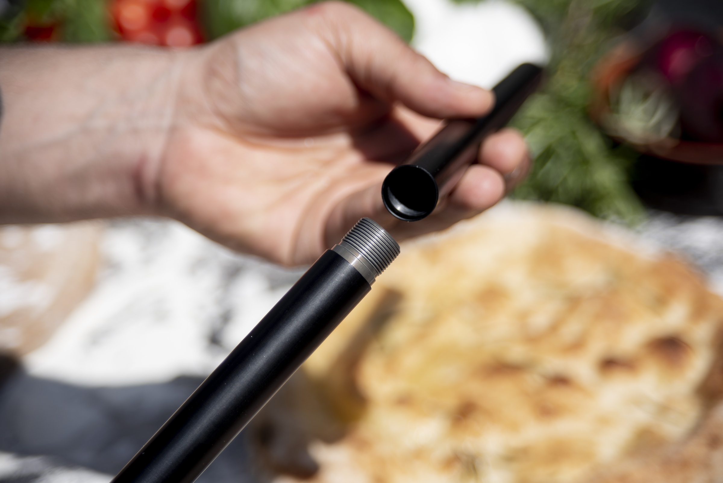 Der Schaufelgriff ist in der Länge variierbar, da er aus mehreren Teilen besteht, die auseinander- und zusammenschraubbar sind. Es ist daher möglich, eine kürzere Pizzaschaufel zu erhalten, indem einfach eine Schaftverlängerung (oder auch beide) nicht angebracht werden. Die Länge der Alfa-Pizzaschaufel kann also je nach Bedarf geändert werden, wobei sie zwischen 95 cm (Griff + Schaufelblatt), 125 cm (Griff + 1 Schaftverlängerung + Schaufelblatt) oder 145 cm (Griff + 2 Schaftverlängerungen + Schaufelblatt) wählen können. Dieser Faktor ist zum Beispiel bei der Verwendung eines kleinen Ofens sehr nützlich, vor allem aber bei Arbeiten auf engem Raum, z. B. bei einem Holzbackofen auf der Terrasse.