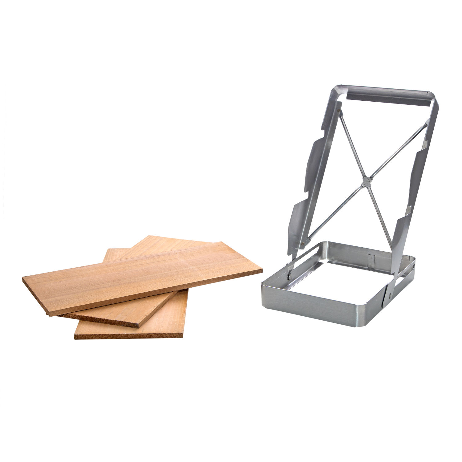 - zusammenklappbarer Halter für 3 Zedernholzplanken