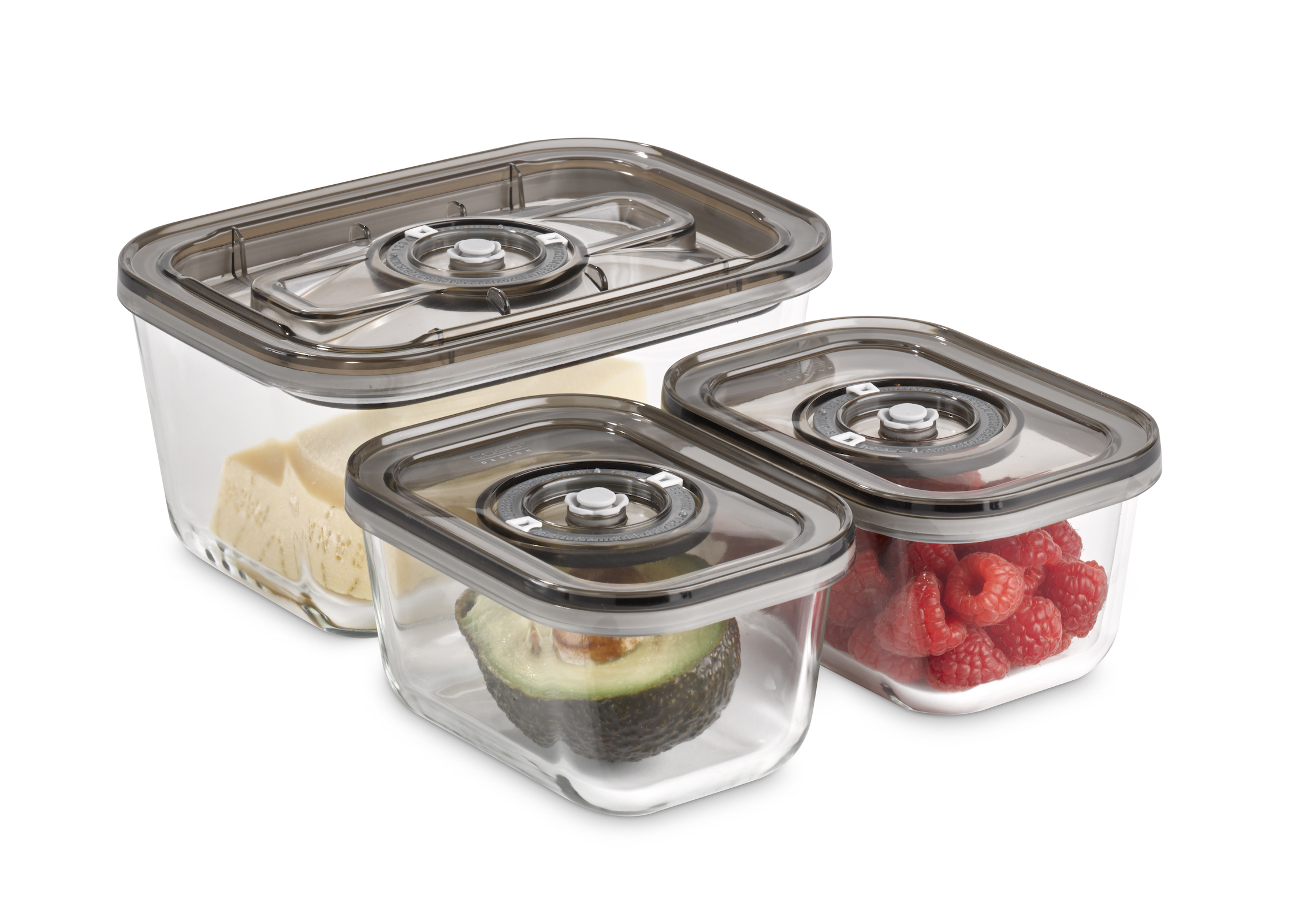 - Stapelbares Vakuumbehälter-Set aus Glas mit Kunststoffdeckel