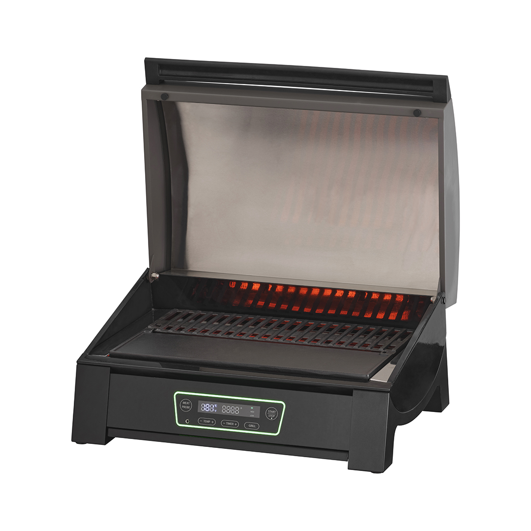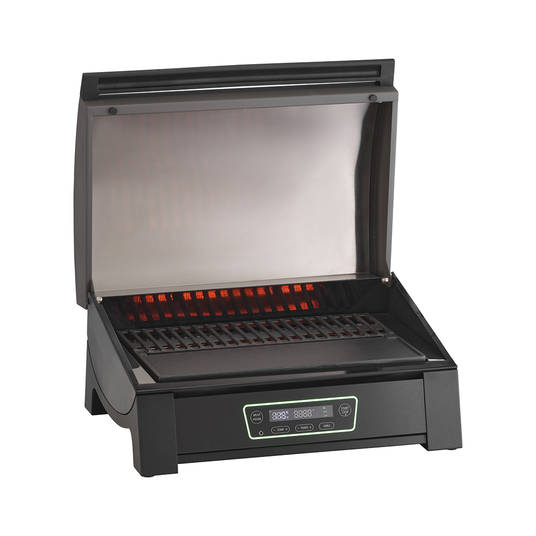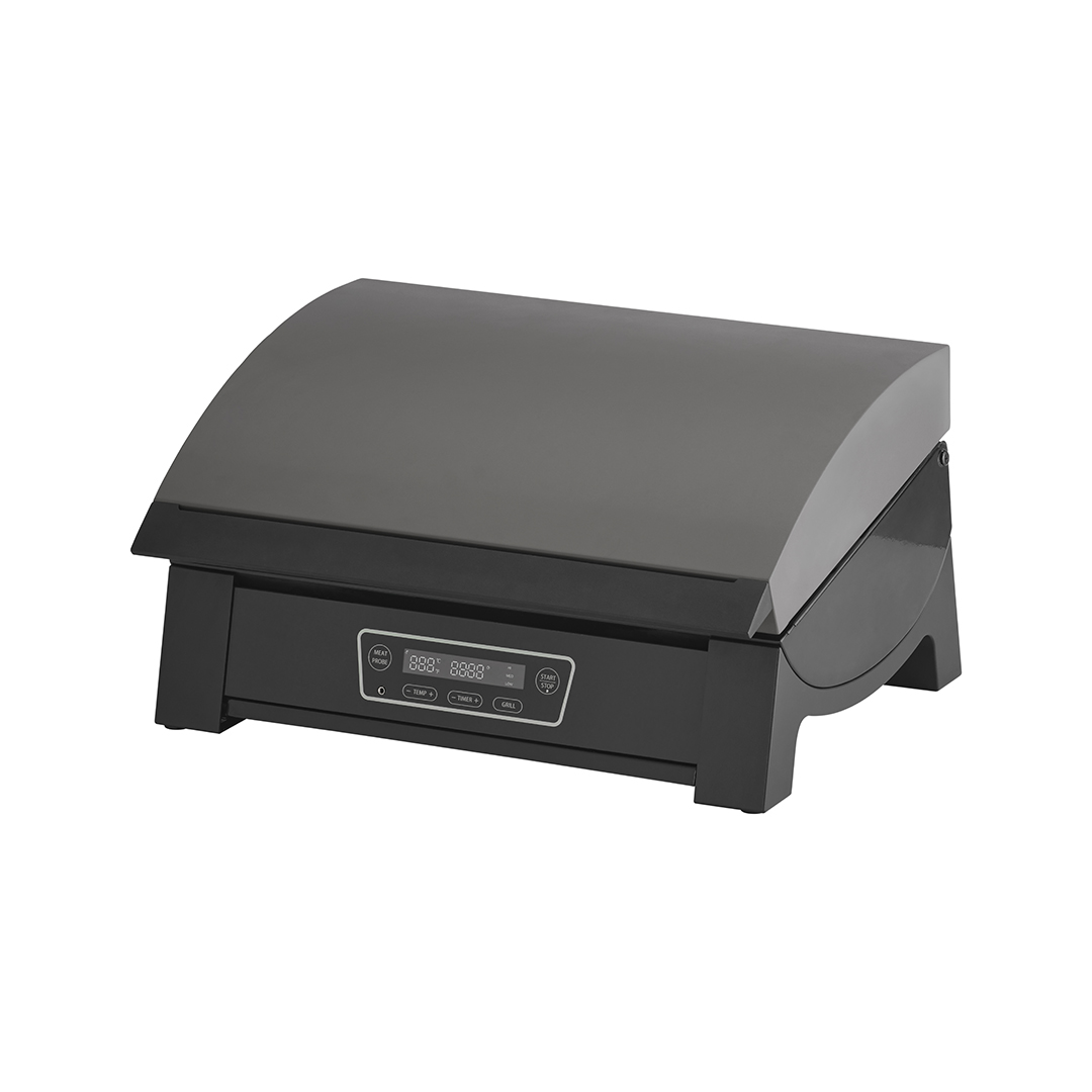 In nur 10 Minuten erreicht dieser elektrische Powergrill eine Temperatur von bis zu 360 Grad Celsius. Er ist mit einem vollständig integrierten Bedienfeld an der Vorderseite ausgestattet – inklusive Grillmodi, Fleischsonde und einstellbarer Temperaturregelung. Dank des integrierten Timers haben Sie genügend Zeit und Flexibilität, um Beilagen vorzubereiten oder einfach das Grillerlebnis zu genießen. Durch das verbesserte Design erleben Sie ein rauchfreies und effizientes Grillerlebnis – ideal für jede Umgebung und Gelegenheit, auch für den Balkon!