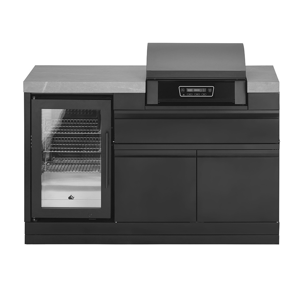 Ausgestattet mit einer hochwertigen Arbeitsplatte aus Sinterstein, die für ein elegantes Aussehen und hervorragende Witterungsbeständigkeit sorgt und einem Outdoor-Kühlschrank, damit Sie Ihre Getränke und Vorräte immer sofort griffbereit haben, lässt diese kompakte Außenküche kaum Wünsche offen. Der Grandpro-Kühlschrank hat ein Fassungsvermögen von 63 Litern, einen niedrigen Energieverbrauch von nur 60 W und ist für die Klimaklasse ST geeignet.