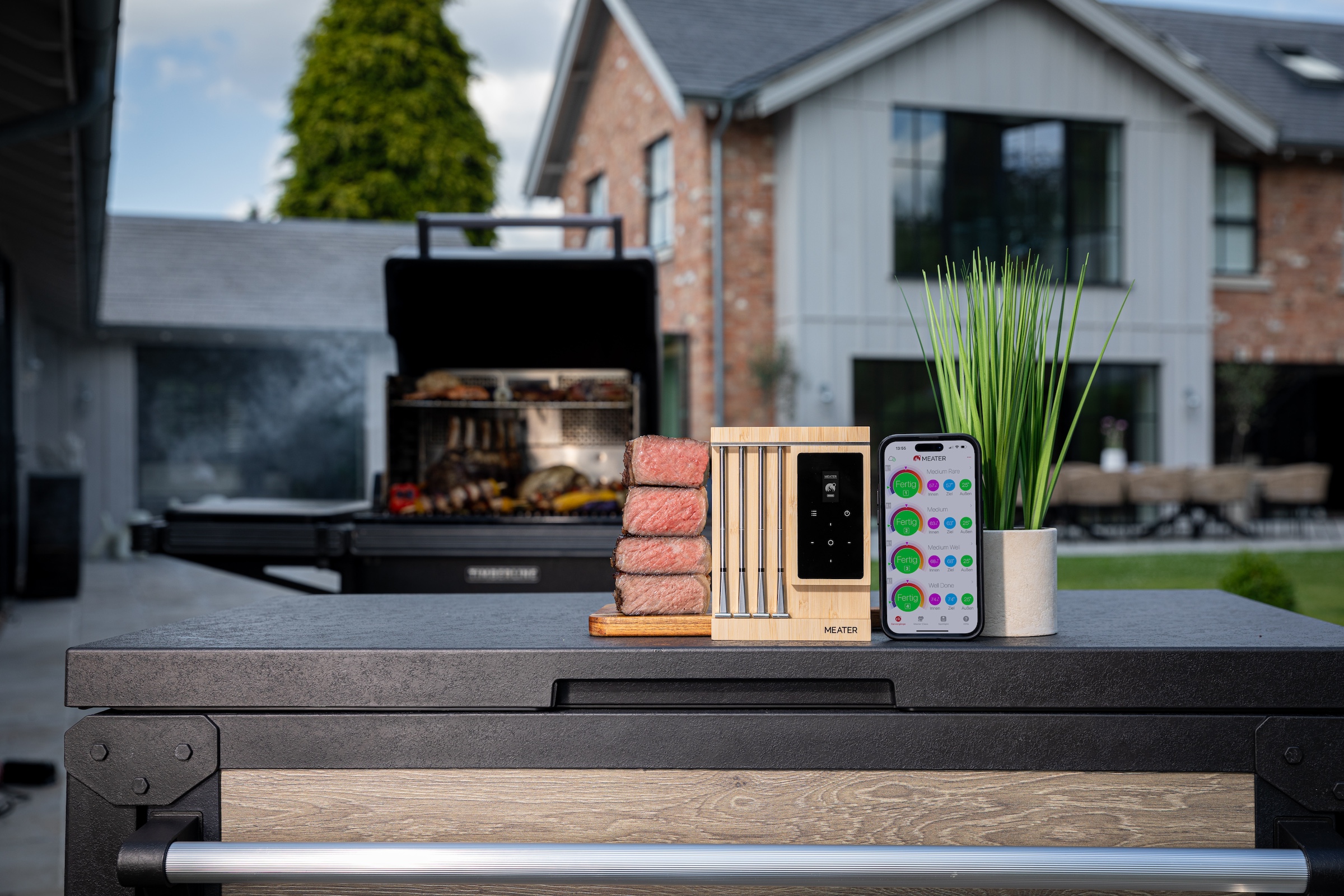 - Verbindet sich direkt mit der MEATER Cloud für eine Überwachung aus jeder Entfernung