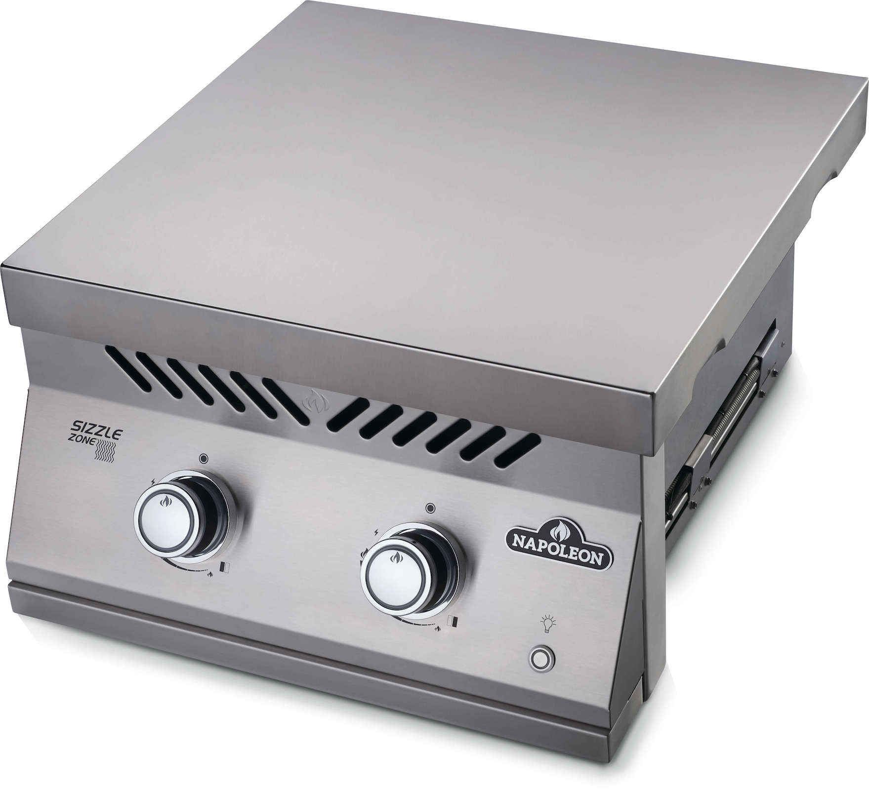 Erweitern Sie Ihren Napoleon Einbau-Gasgrill mit diesem praktischen und leistungsstarken Seitenbrenner aus Edelstahl. Die zwei Napoleon Kochfelder machen die Außenküche nun vielseitiger denn je. Das schicke Edelstahl-Design ist an die 700er Serie exakt angepasst. Dank der Safety Glow Beleuchtung ist auch bei Nacht das Ambiente gesichert. Der Seitenbrenner wird als Einbauelement in die Aussenküche integriert.