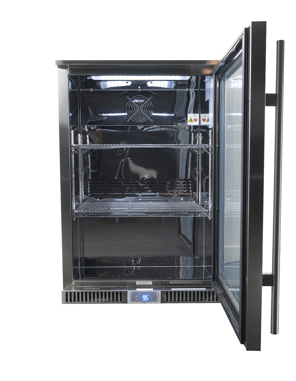 Herausragendes Design in rostfreiem Edelstahl mit Niedrigenergie-LED-Leuchten und reflektierendem Innenbereich. Dieses Gerät wird bei Feiern im Freien für Aufsehen sorgen. Fünfmal schneller von Raumtemperatur zu perfekter Serviertemperatur als mit einem Kühlschrank. Zertifiziert für die Kühlung von Lebensmitteln und Getränken auf 2 Grad bei bis zu 40 Grad Außentemperatur. Vollgepackt mit energiesparender Technologie, wie Energiesparlüftern, UV-reflektierender Doppelverglasung und LED-Leuchten. Der Benutzer kann zudem die ECO-Taste betätigen, um den Energieverbrauch um weitere 33 % zu senken.