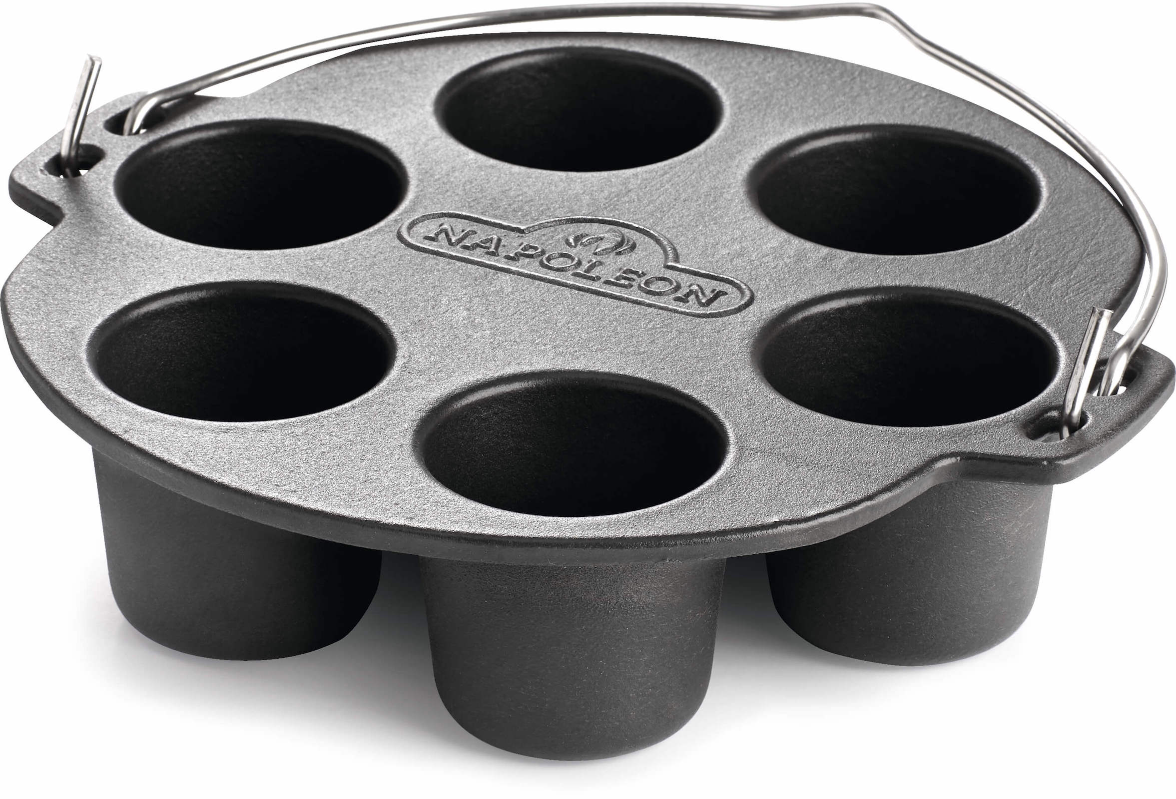 Gusseisen ist ein perfekter Hitzeleiter. Mit dieser Napoleon Muffinform zaubern Sie köstliche Beilagen, die zudem lange warm bleiben. Raffinierte Kuchen und Desserts vom Grill sind die süße Krönung eines köstlichen BBQ Menüs. Mit der Napoleon Muffinform können Sie leckere Mini-Cakes auf Ihrem Grill oder direkt über dem offenen Feuer zubereiten. In der Gussform für 6 Portionen gelingen die Muffins supersaftig, denn das gusseiserne Material punktet mit optimaler Hitzeverteilung. Auch für den Kindergeburtstag sind die kleinen Kuchen immer ein heißgeliebter Programmpunkt – und vom Grill garantiert ein absoluter Hingucker.