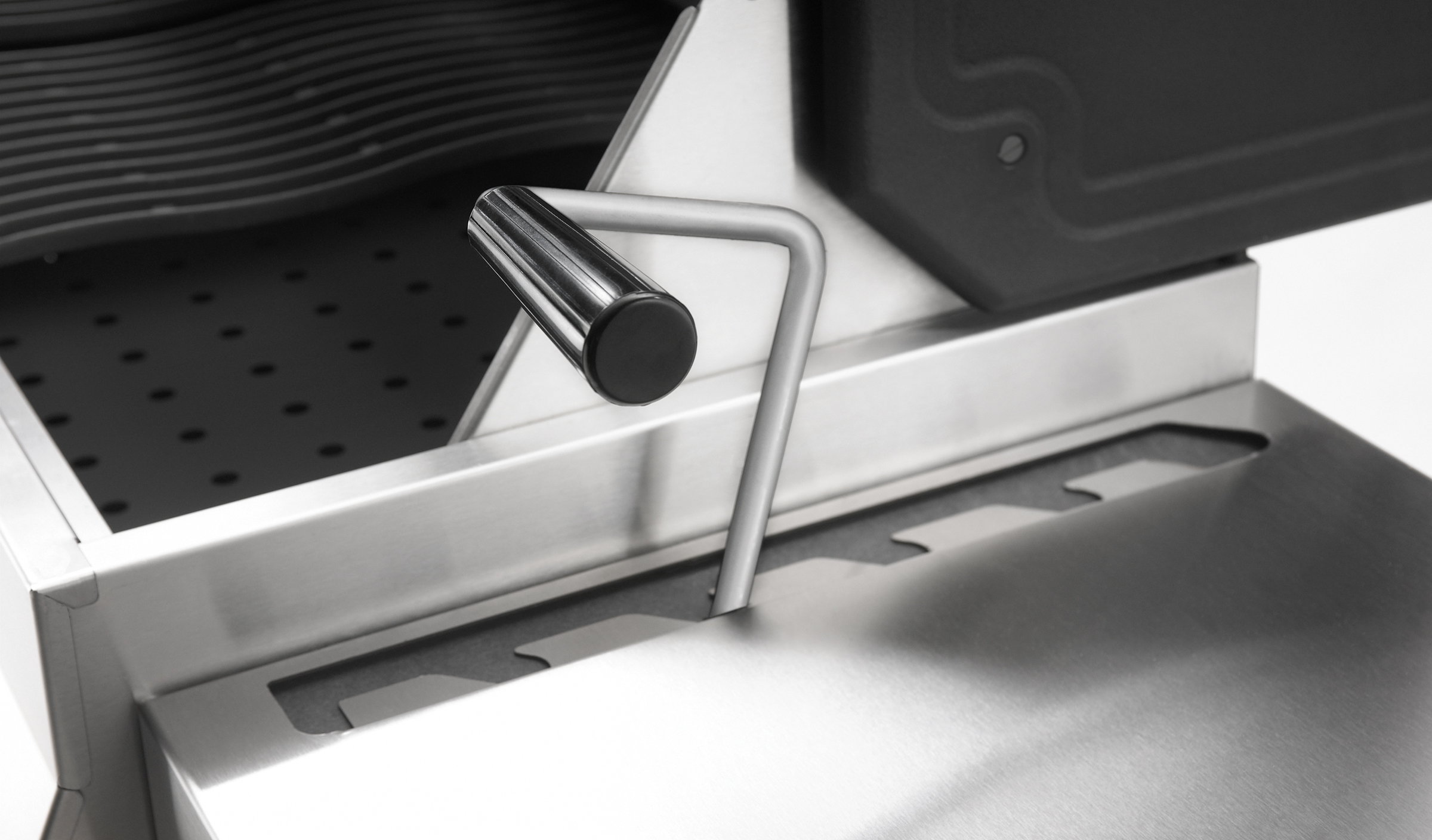 - höhenverstellbare, 3-fach geteilte Holzkohlewanne für mehrstufige Temperaturregulierung