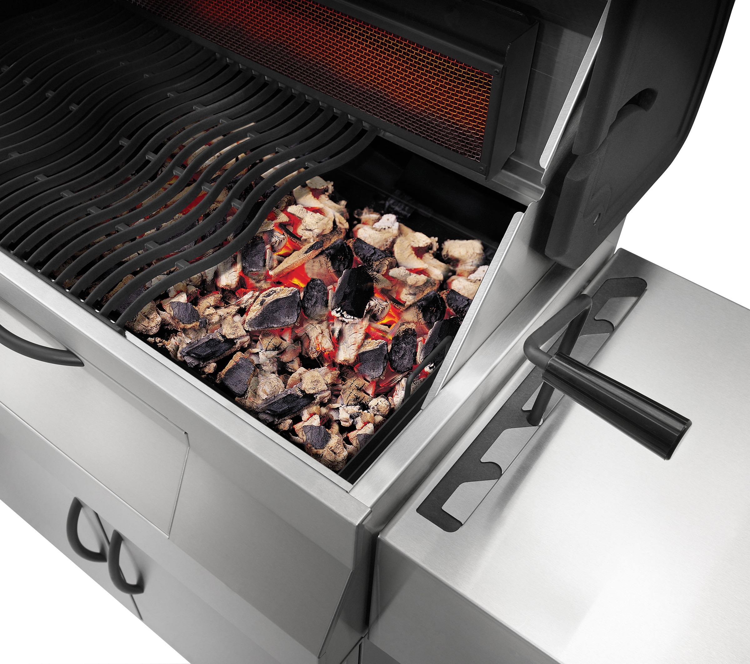 Traditionelles Holzkohlegrillen wird mit dem voluminösen Charcoal Professional zum wahrlich großen Vergnügen! Grillen Sie traditionell über Holzkohle oder verleihen Sie Ihrem Grillmenü mit den Räucher-Holzchips eine ganz besondere Note. Der Napoleon PRO605 Holzkohlegrill macht mit Eleganz und Ausstattung seinem Namen alle Ehre. Großzügige Seitenablagen inklusive Besteckhaken, natürlich alles aus Edelstahl, machen die Grillvorbereitungen noch komfortabler. Eine dreiteilige, höhenverstellbare Kohlewanne und ein Heckbrenner für saftige Gerichte vom Drehspieß sorgen für die perfekte Hitze unter der platzsparenden LIFT EASE Rollhaube inklusive präzisem ACCU PROBE Thermometer. Die von vorne zugängliche Ladeklappe erleichtert außerdem das Nachlegen von Kohle. Viel Vergnügen also bei Ihrem langen Grillvergnügen