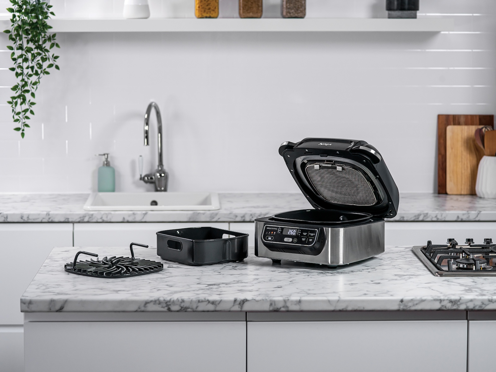 Produktinformationen "Ninja Foodi Grill & Heißluftfritteuse Elektrogrill mit 5 anpassbaren Garfunktionen AG301EU"