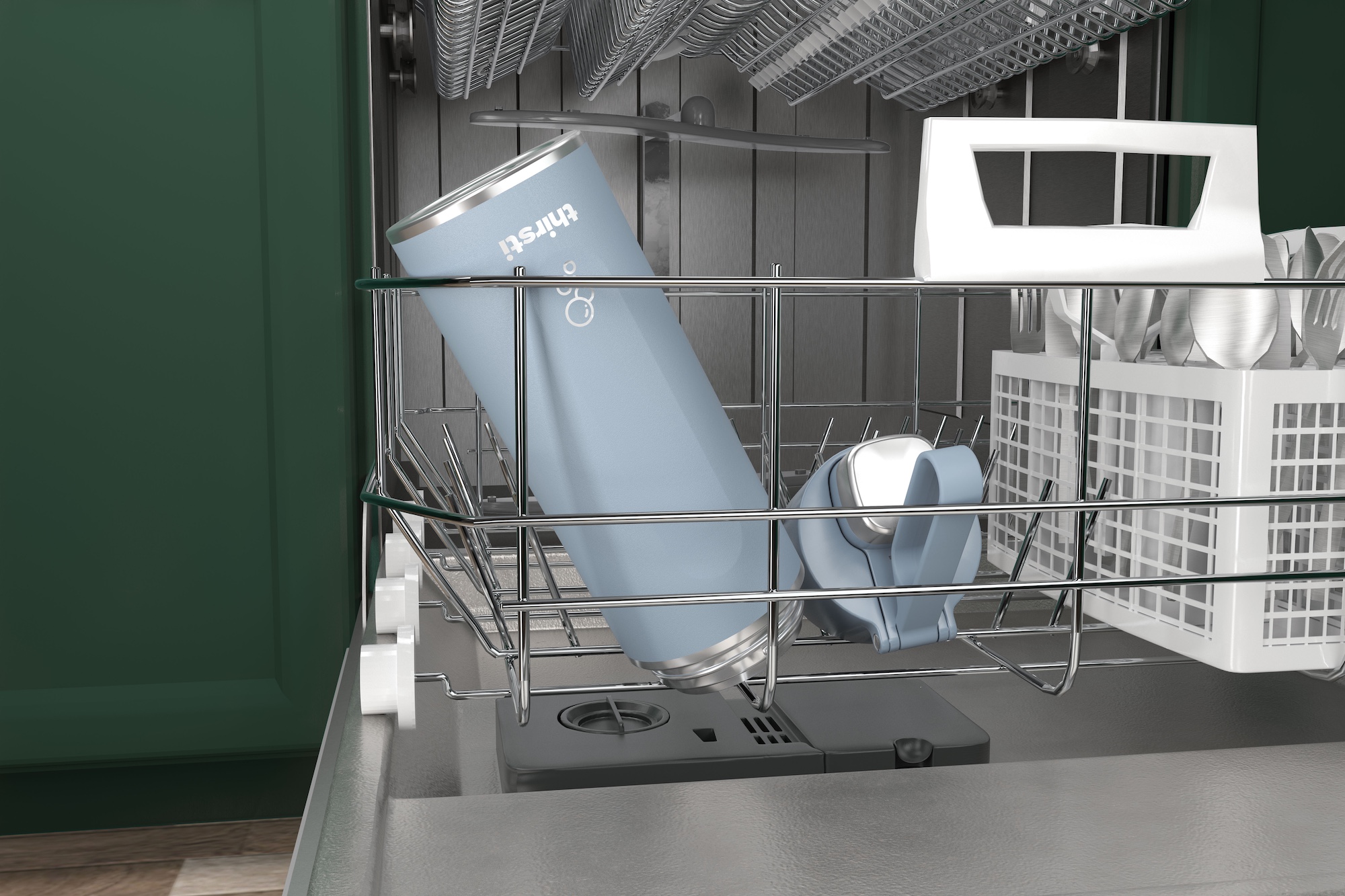 Geben Sie Ihre Trinkflasche bei Bedarf einfach in die Spülmaschine. Um sie in Topform zu halten, spülen Sie sie per Hand in warmem Seifenwasser. Für eine gründliche Reinigung können Sie die Dichtungen vom Deckel entfernen und per Hand spülen.