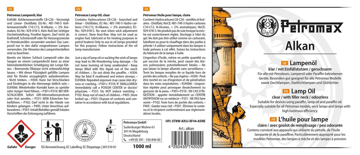 - Dickflüssiger als herkömmliches Petroleum für ein leichteres Handling beim Einfüllen
