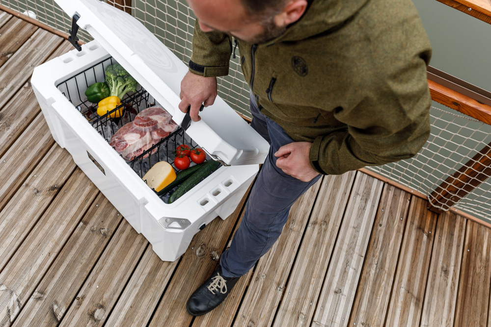 Der Petromax Einsatzkorb für die Kühlbox ermöglicht eine schonend kühle Lagerung von empfindlichen Lebensmitteln, wie frisches Gemüse und Obst. Der Korb lässt sich passgenau auf den inneren Rand der Kühlbox einsetzen und bildet durch ausreichend Abstand zum Eis eine weitere Temperaturebene, die eine trockene Lagerung ermöglicht.